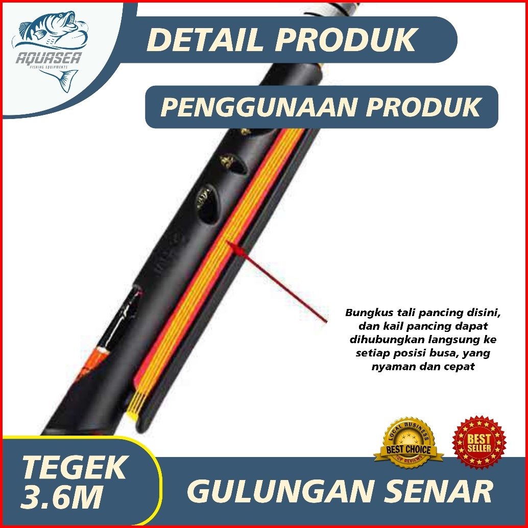 Aquasea - Gulungan Senar Tegek 3.6m Bahan Plastik Gulungan Tali Pancing Tegek Klem Tegek Klip