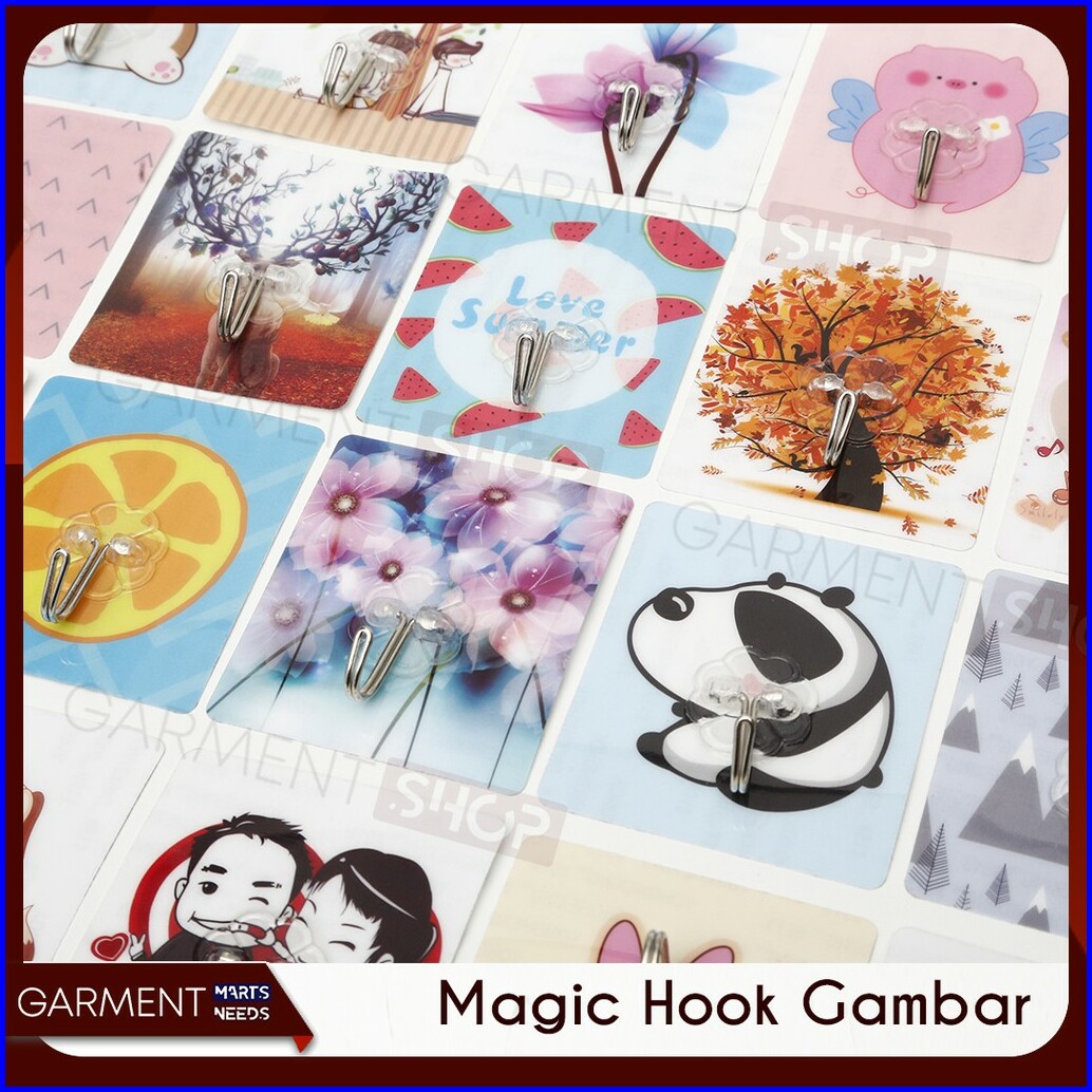 Gantungan Tempel Kaca Dinding Keramik Mebel Magic Hook Sapu Gambar Motif Banyak Kuat