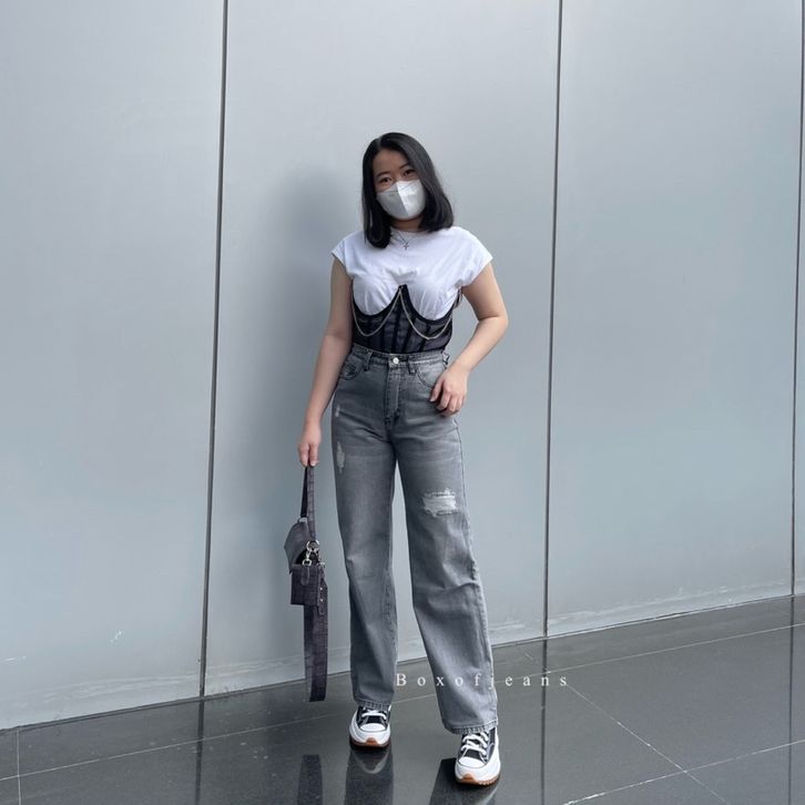 Celana Jeans Boxofjeans - Celana Jeans Wanita Sobek MILLY GREY Ripped Jeans Celana Jeans Wanita Jumbo High Waist
