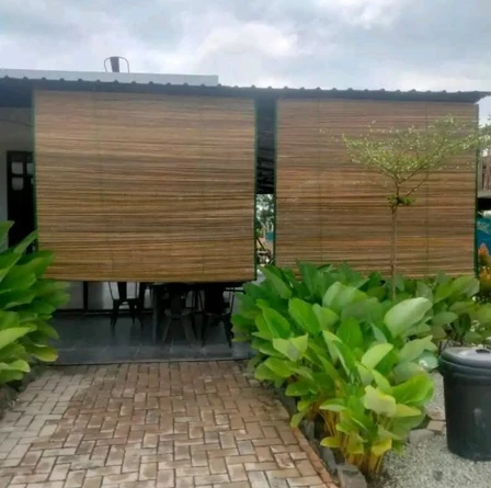 Tirai bambu krey plitur outdoor ukuran 2x2,lengkap dgn tali penggulung