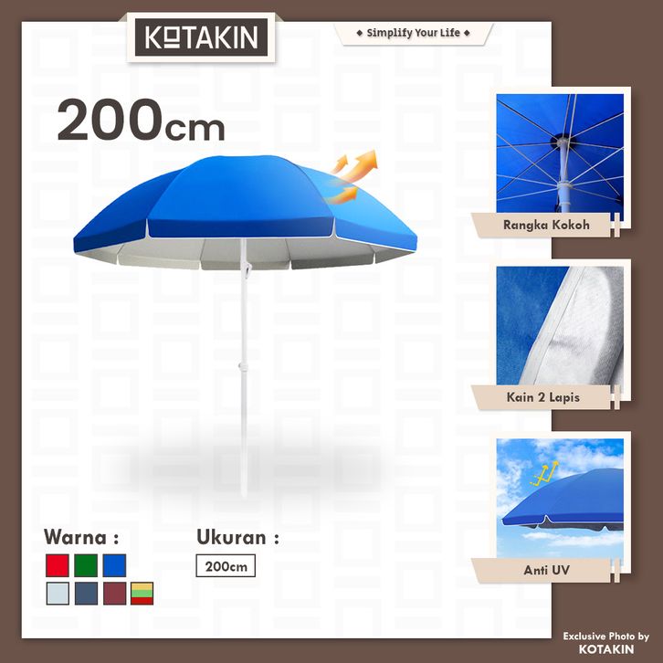 KOTAKIN Payung Tenda Jumbo Diameter 200cm Bazaar Event Pantai Cafe Outdoor Tenda Booth Jualan Anti UV