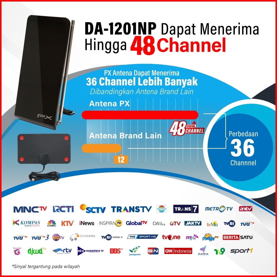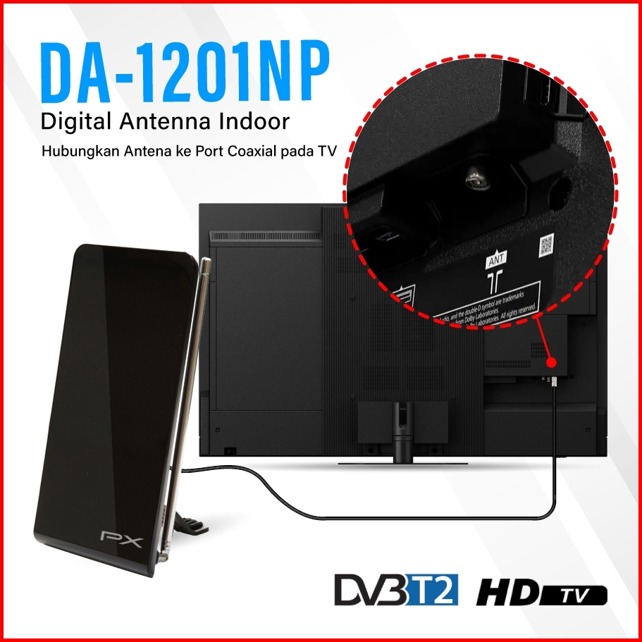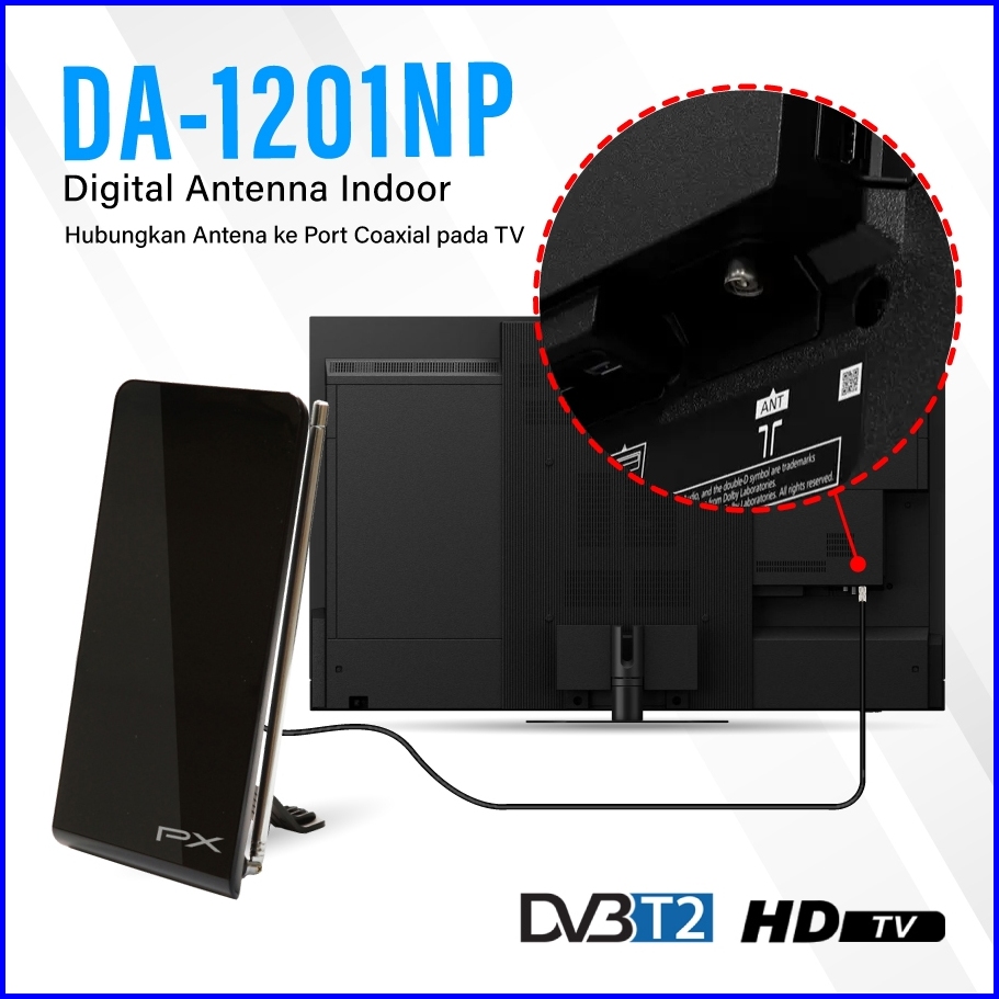 Antena Tv Indoor Px Da-1201np Digital Tv Dvb-t2 Garansi 24 Bulan