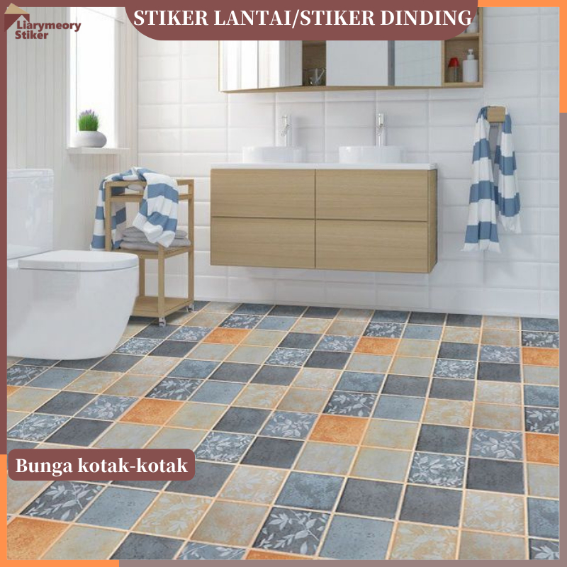 Stiker Lantai Kamar Mandi Wallpaper Tahan Air Self-Adhesive 2m Menebal Non-Slip Lantai Stiker Lantai Dapur Stiker