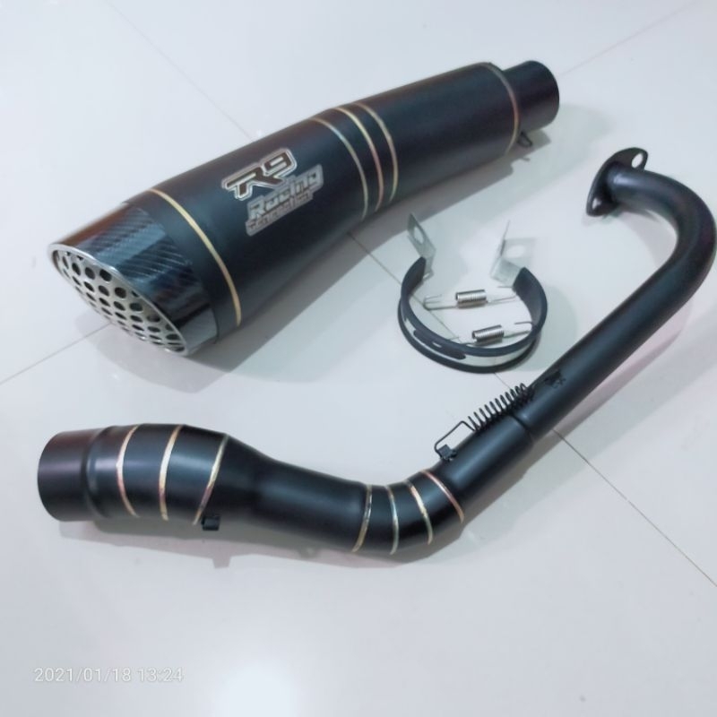 Knalpot Racing R9 H2 Full System Hitam Doff – Nmax, Aerox, Xmax, Vario, Beat, Mio