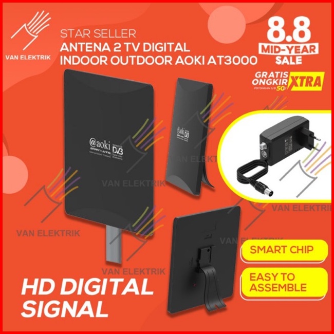 Antena 2 Tv Digital Luar Dalam Indoor Outdoor Aoki At3000