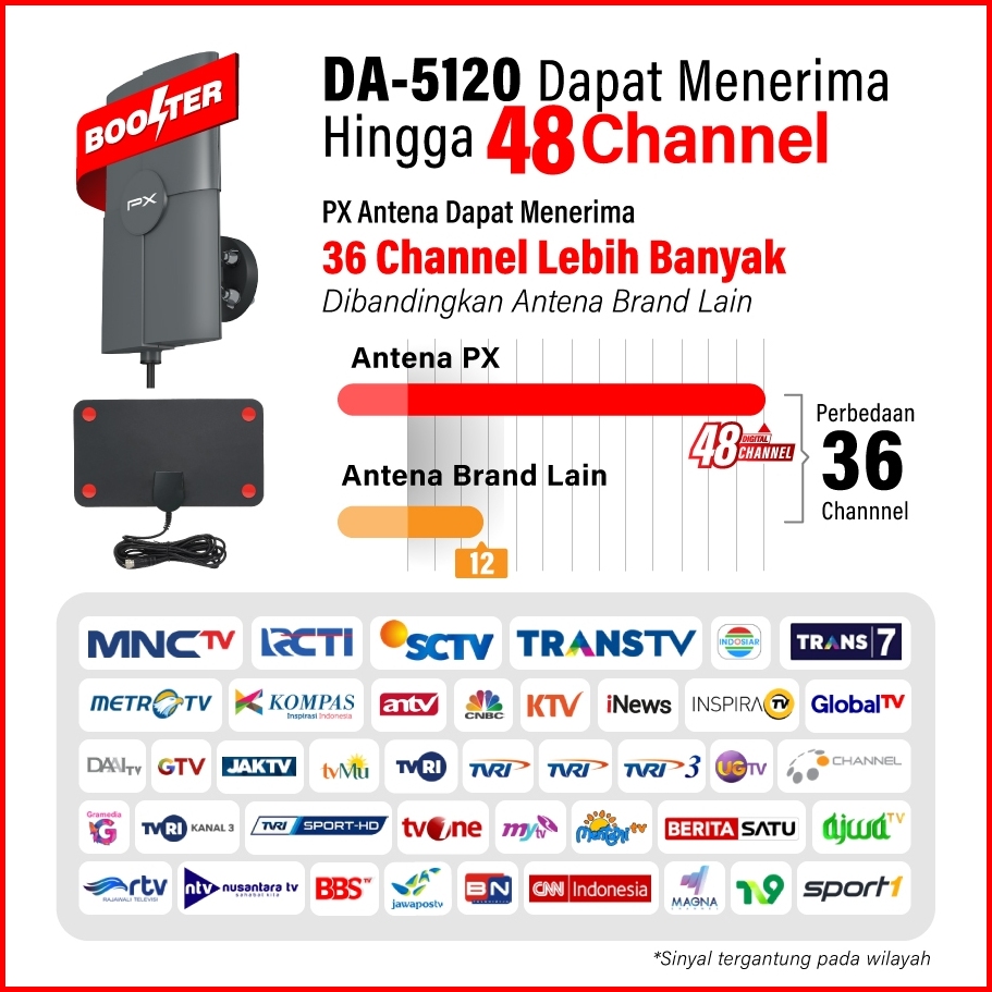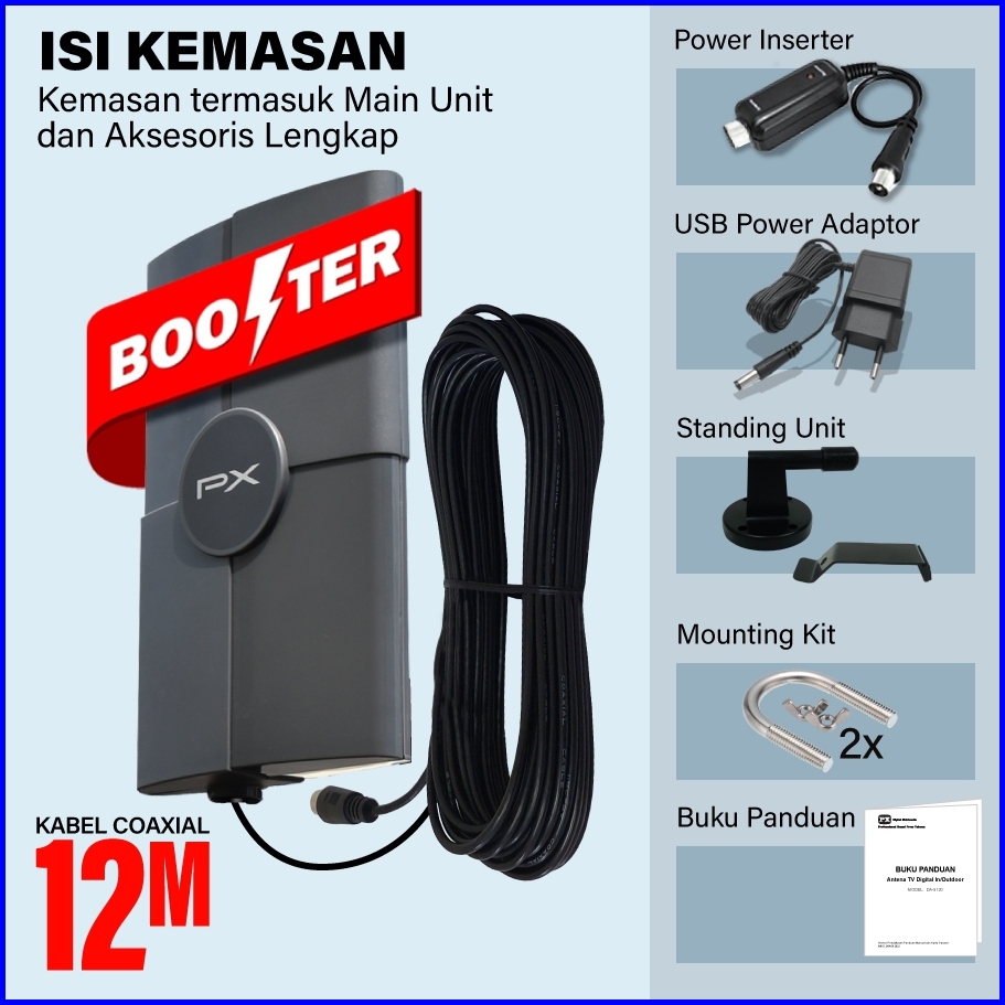 Antena Tv In Outdoor Px Da-5120 Digital Tv Dengan Booster Dan Power Inserter