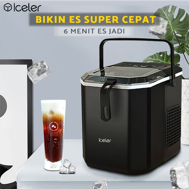 Iceler Mesin Es Portable Ice Maker 12 Kg per Hari dengan 2 Handle