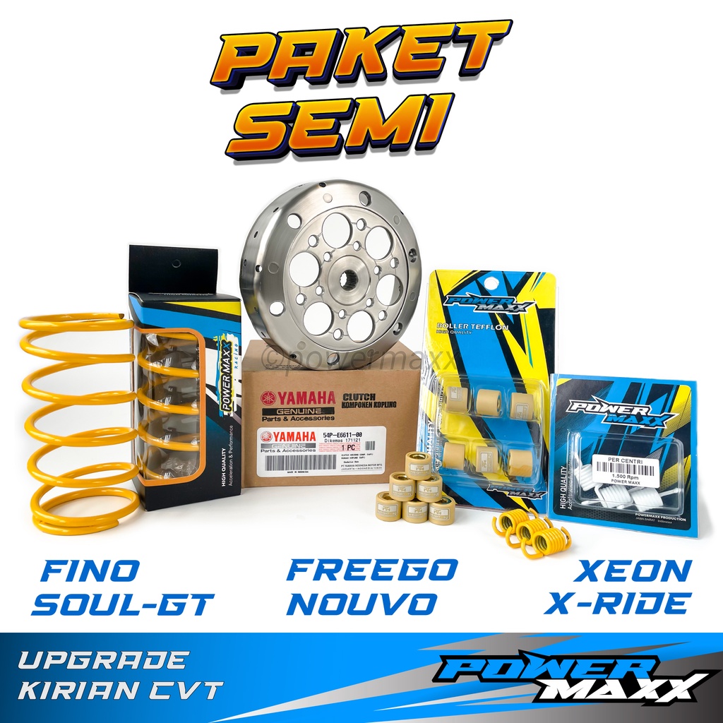 PAKET SEMI UPGRADE KIRIAN CVT soul xride fazzio freego racing -Mangkok KampasGanda+PerCVT+Roller+PerKampasGanda-powermax