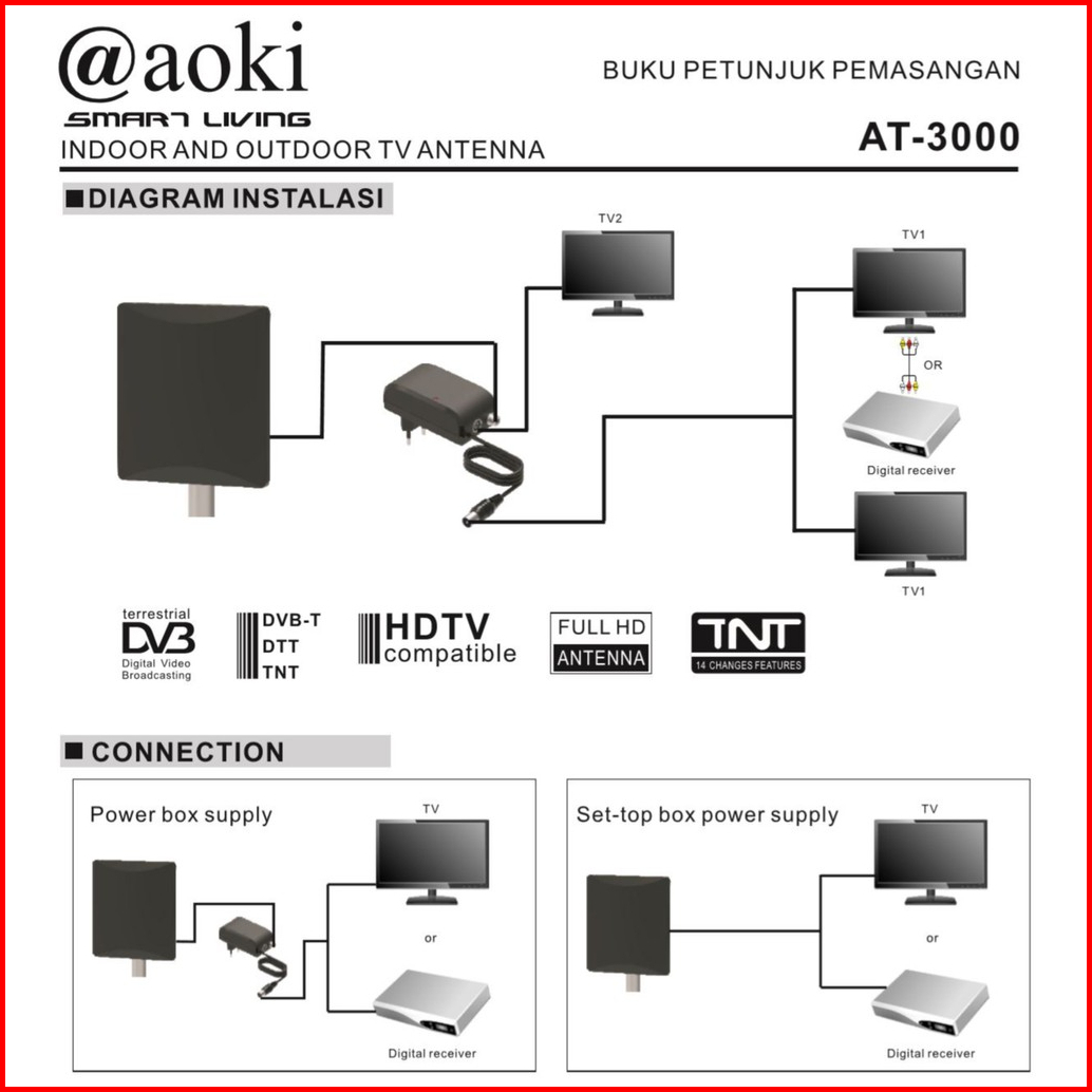 Aoki Antena 2 Tv Digital Luar Dalam Indoor Outdoor At3000
