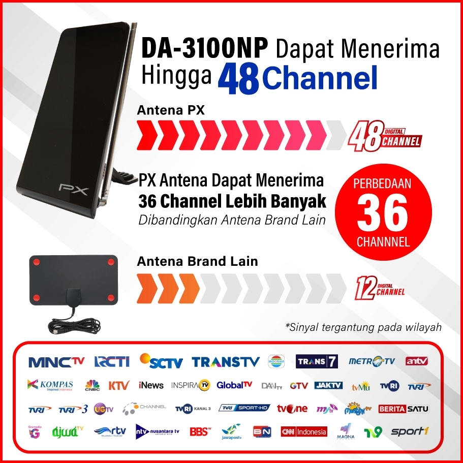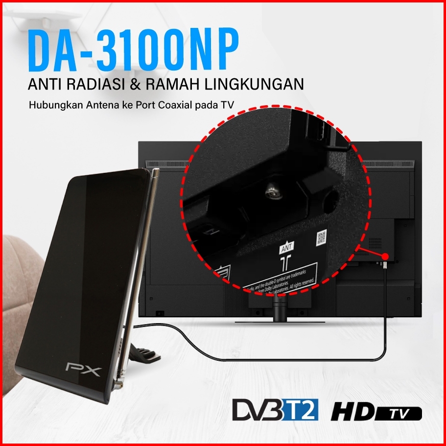 Antena Tv Indoor Px Da-3100np Digital Tv Dvb-t2 Garansi 24 Bulan
