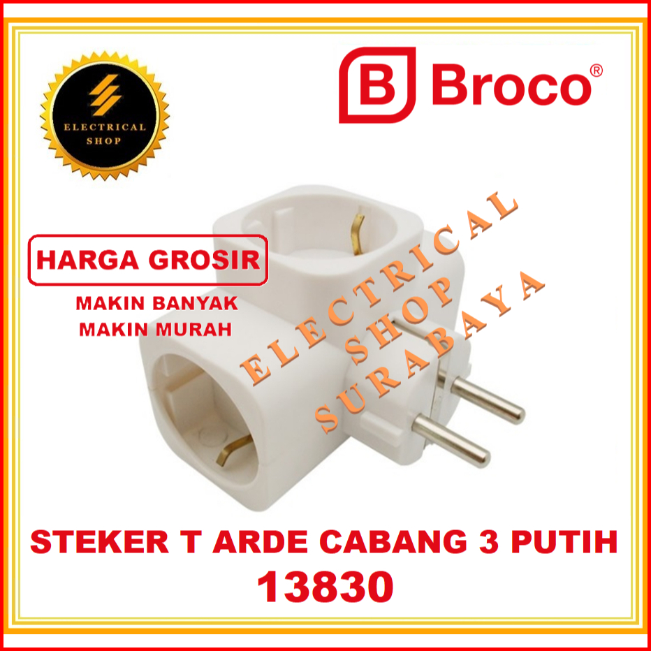 Grosir Broco Steker T Arde Putih 13830 Stop Kontak T Bambu Cabang 3 1383055 Original Sni