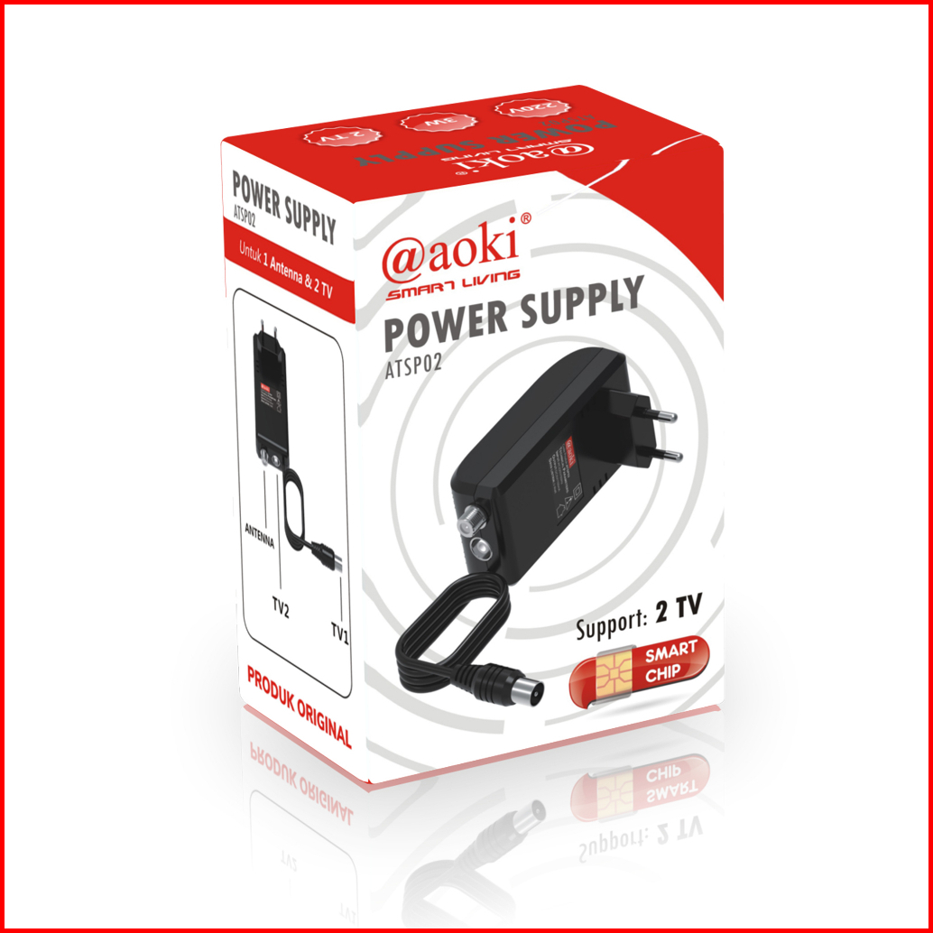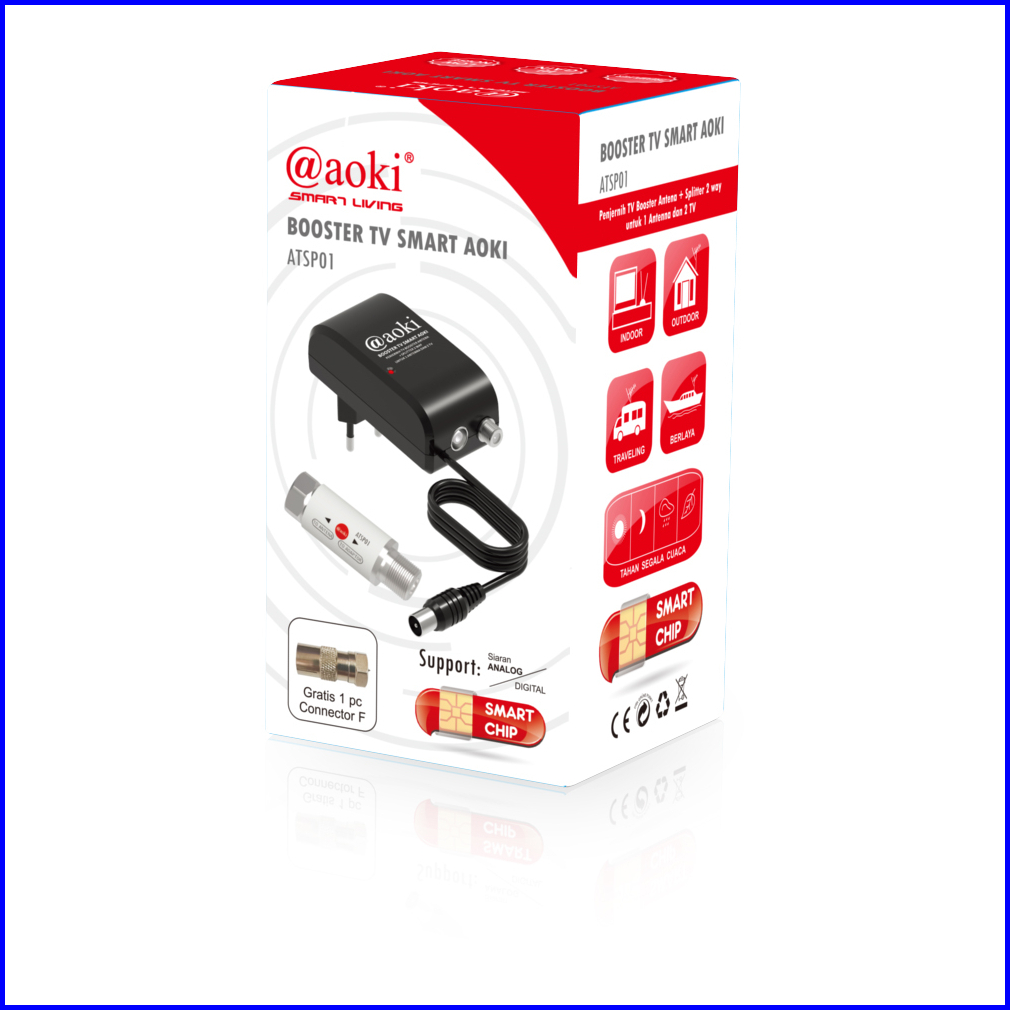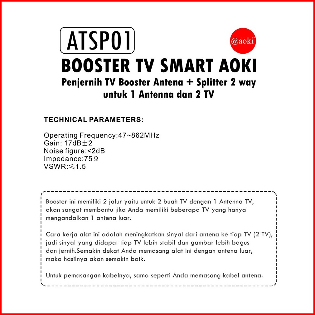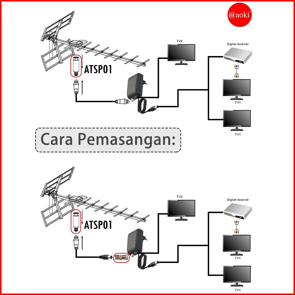 Aoki Booster Antena Penjernih Tv Splitter Untuk 2 Tv Power Supply