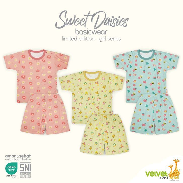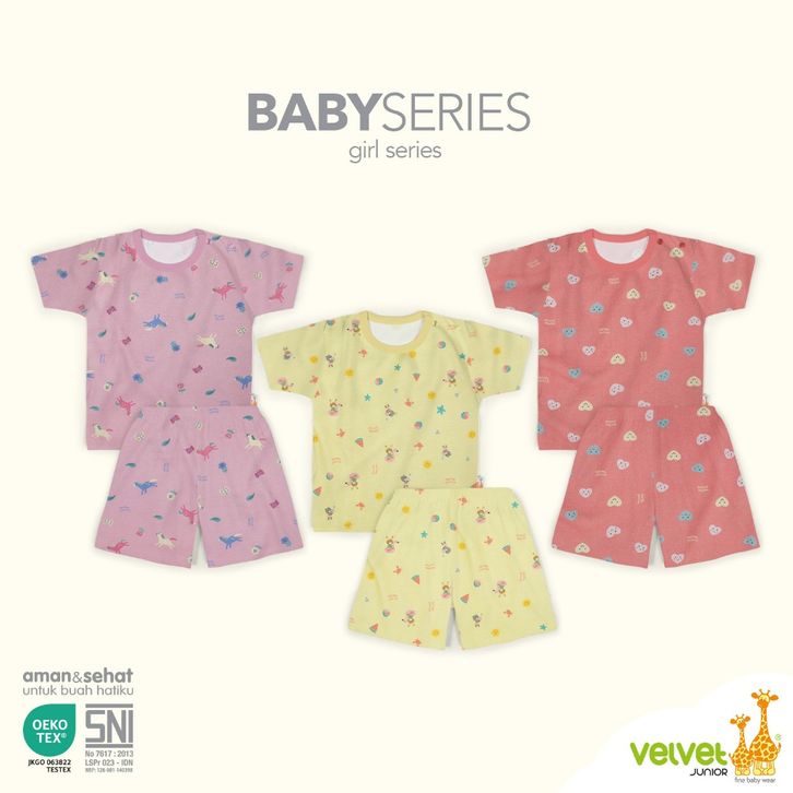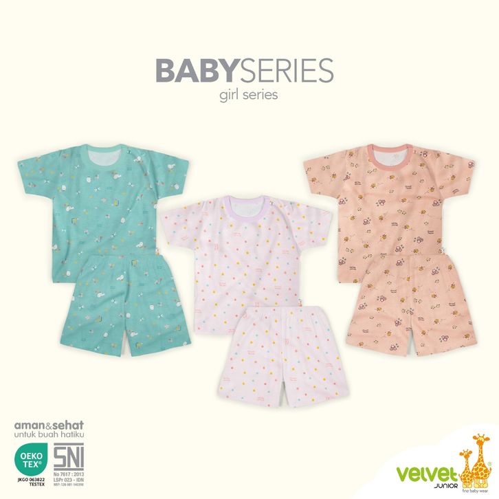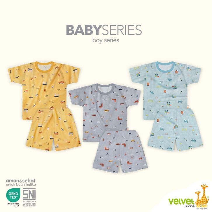 Velvet Junior BasicWear Limited Setelan Baju Anak Kancing Pundak Tangan Pendek Celana Pendek Boy and Girl Series Motif