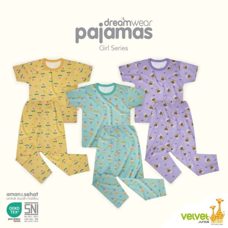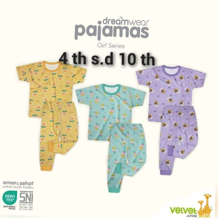 3 stel . 4 th s.d 10 th Atasan Pendek Celana Panjang Velvet Junior Girl/Piyama