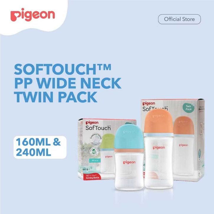 Pigeon Twinpack Botol BPP Wide Neck W/Softouch Nipple 240mili 160mili / pigeon botol susu wide neck / softouch / widene