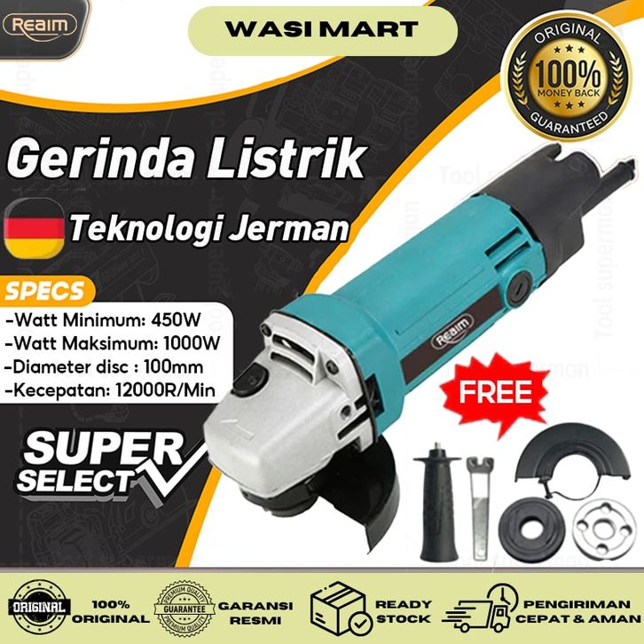 Reaim Mesin Gerinda Tangan 4 inch 400W Angle Grinder Kualitas Tinggi Potong Poles Piringan Amplas Murah Mesin Angle
