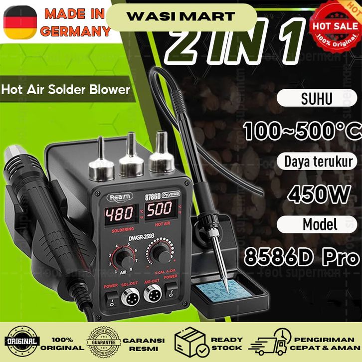 Hot Air Solder Blower 8586D 450W Phone Repair Digital Display 2 In 1 Soldering Station Solder Uap Blower