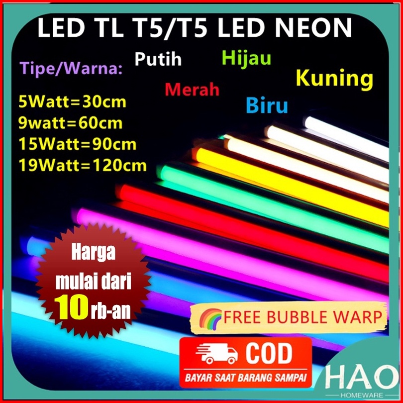 Lampu Tl Neon T5 Led 5 9 15 19w Tube Warna Warni Lampu Neon Led