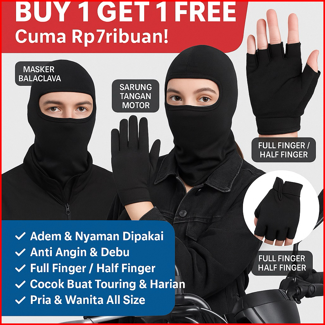 B1g1 Masker Ninja Topeng Sarung Tangan Motor Anti Angin Debu Nyaman Dipakai Harian