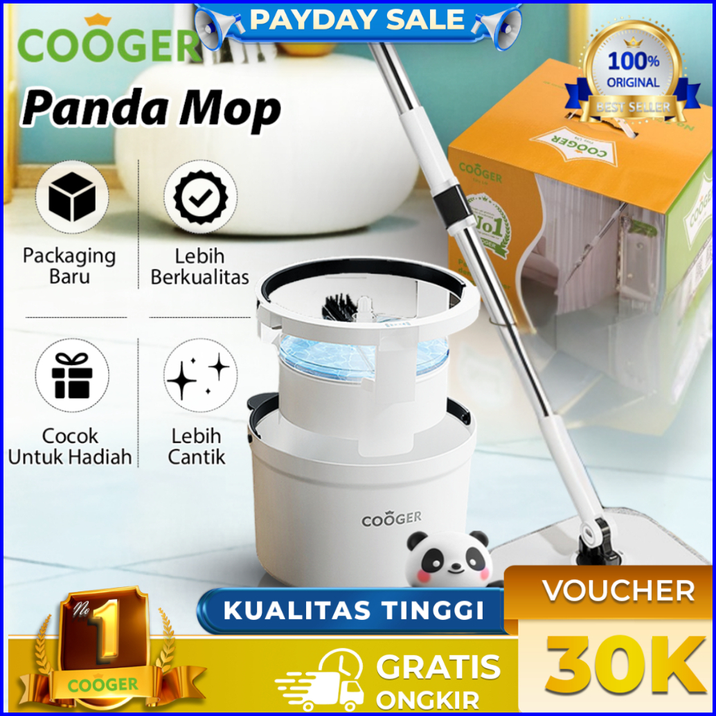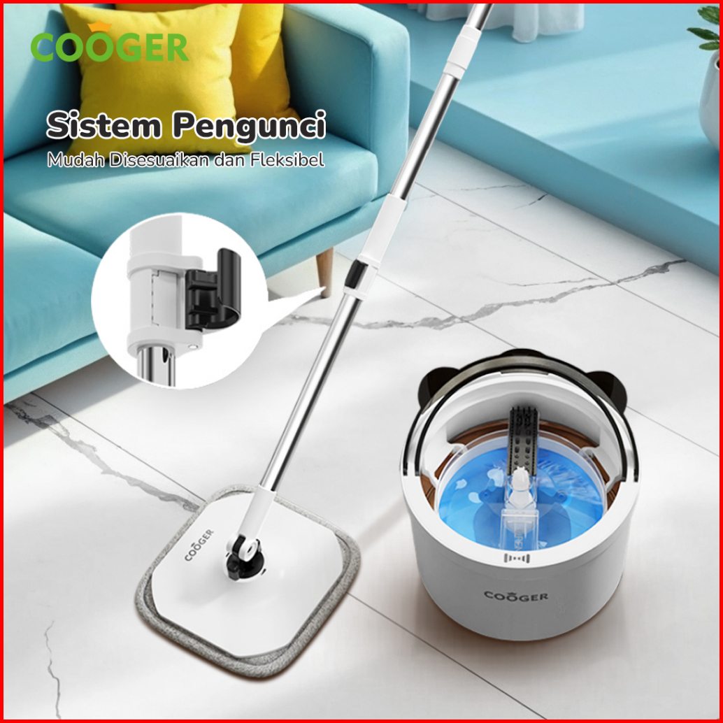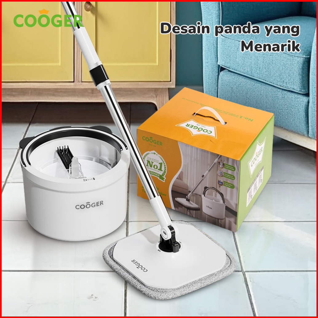 Cooger Alat Pel Single Spin Mop Panda Bucket Spin Mop Alat Pel Lantai 2in1 Dalam Satu Ember Pel Putar Bentuk Panda