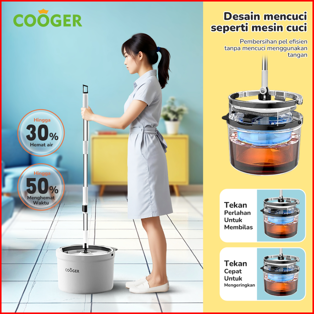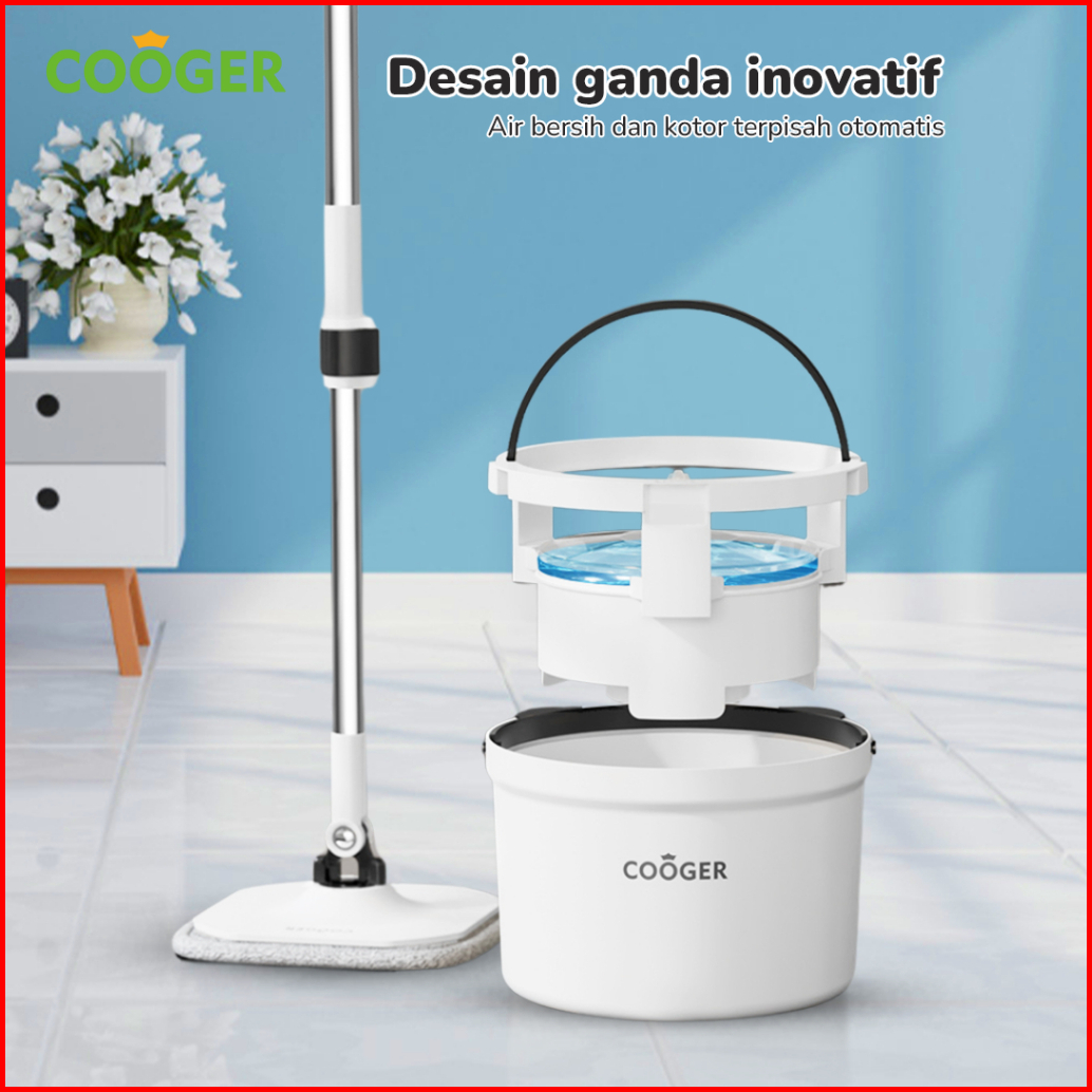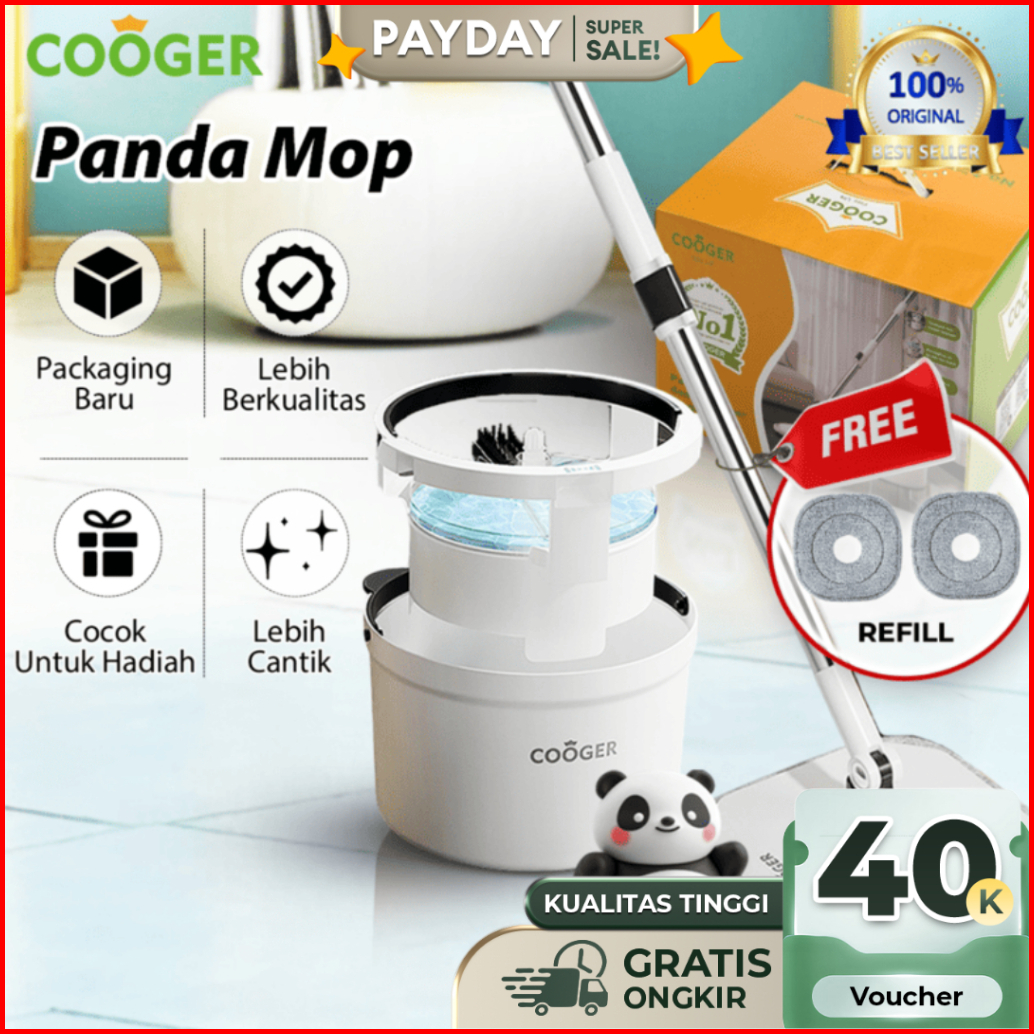 Cooger Alat Pel Single Spin Mop Panda Bucket Spin Mop Alat Pel Lantai 2in1 Dalam Satu Ember Pel Putar Bentuk Panda