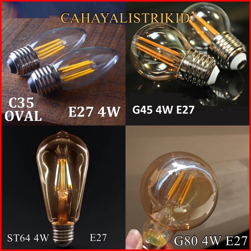 Bohlam Lampu Led Kuning Filamen Cafe Edison St64 G45 G80 C35 4w 2w E27 Lampu Cafe Lampu Dekorasi