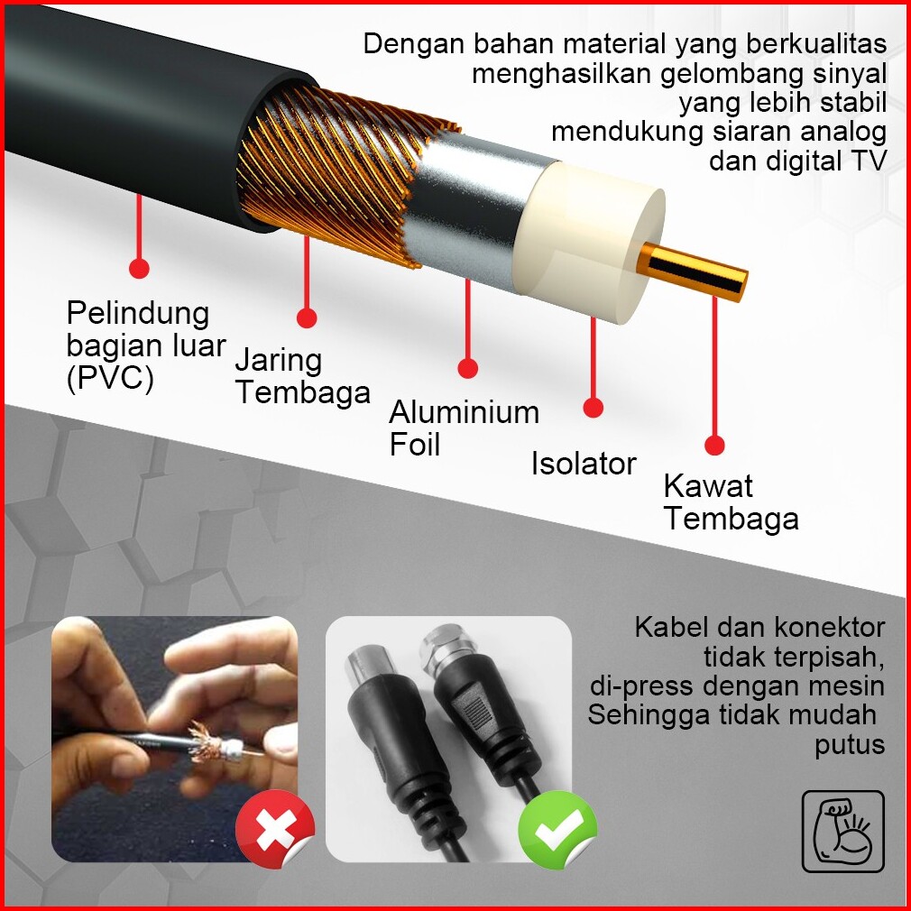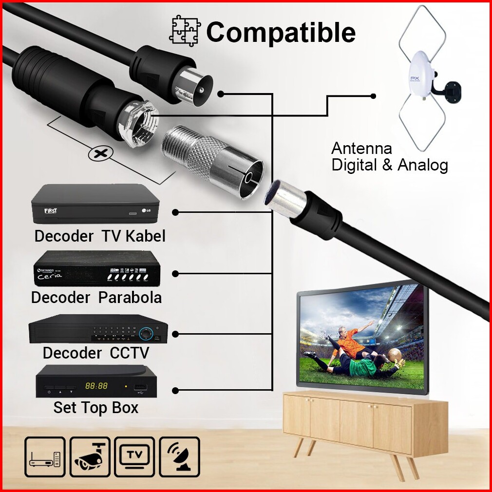 12m Kabel Antena Tv Parabola Cctv Coaxial Cable Male To Male Px