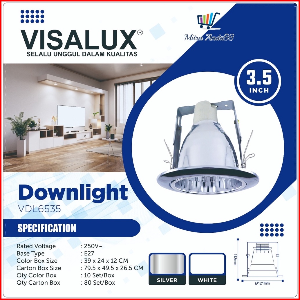 Mitraanda88 Downlight 3.5 Inch Dan 4 Inch Tebal Adjustable Plus Fitting E27 Bulat Material Aluminium