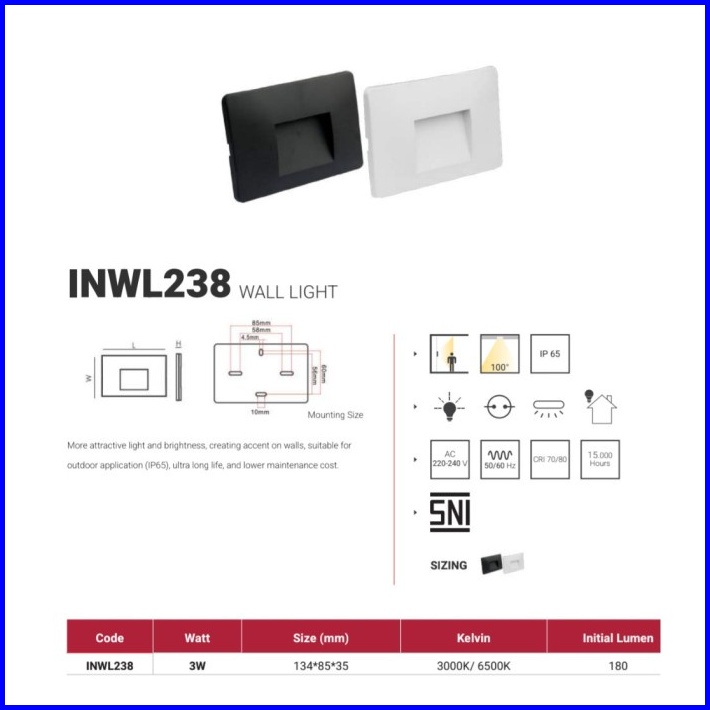 Inlite Lampu Dinding Led In Lite Led Wall Light Lampu Led Tangga Led Step Light 3w - Inwl238