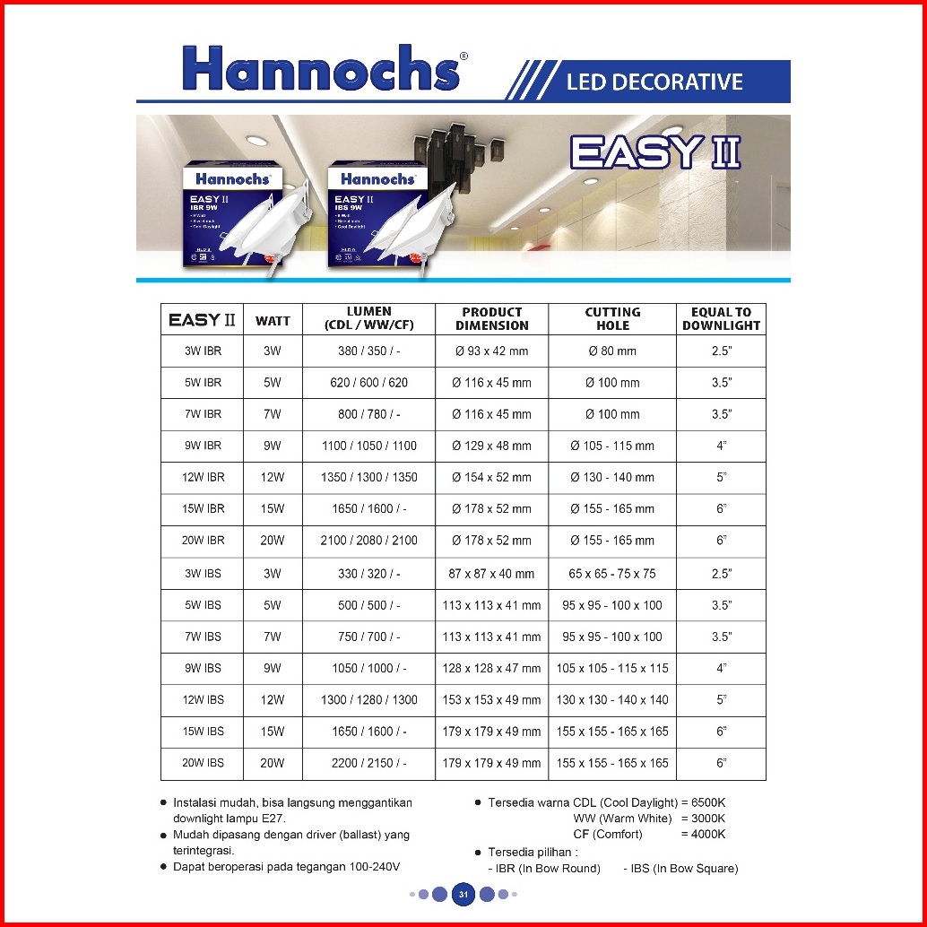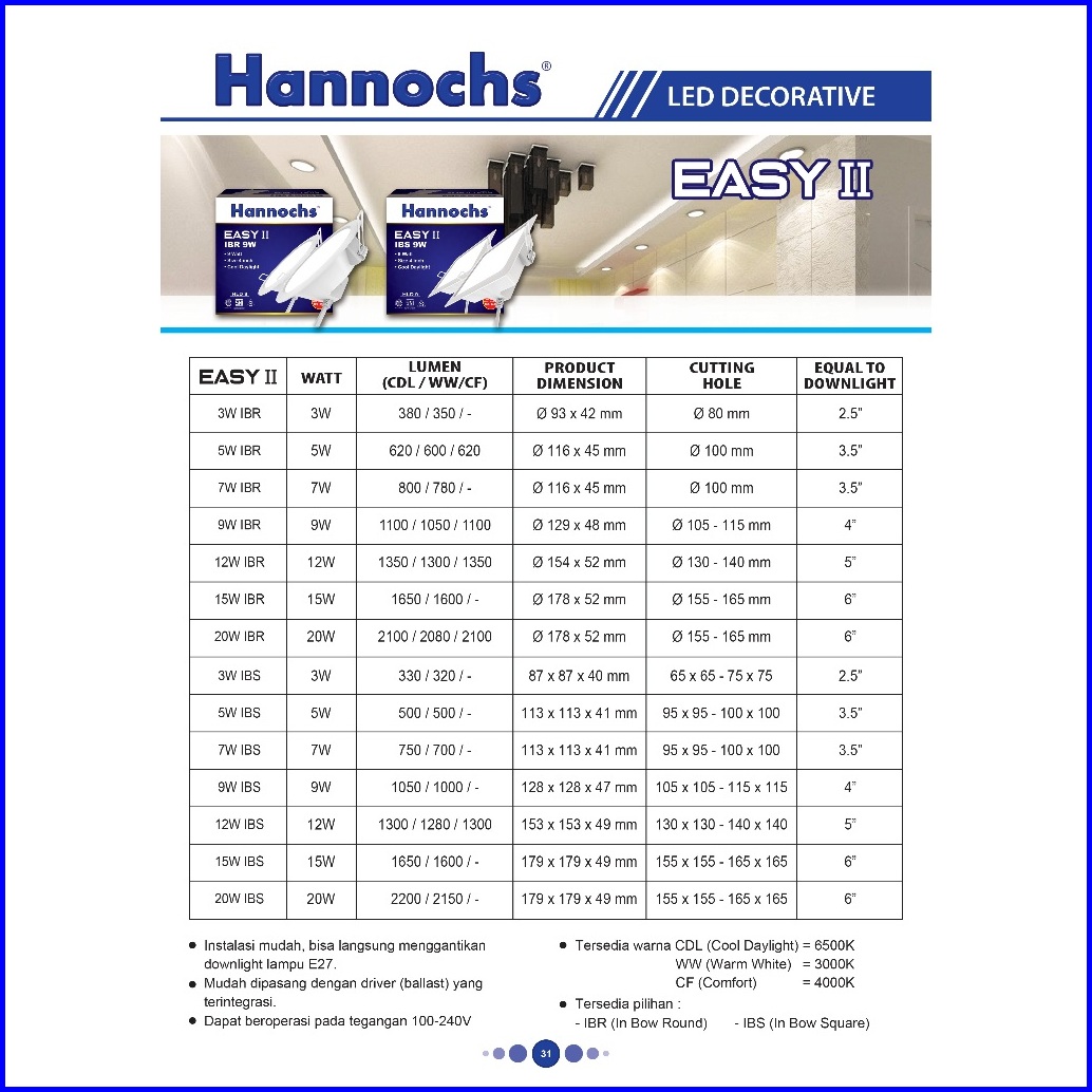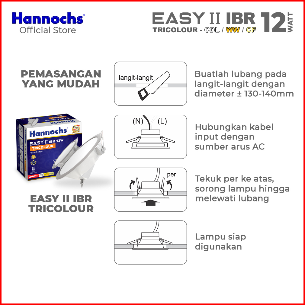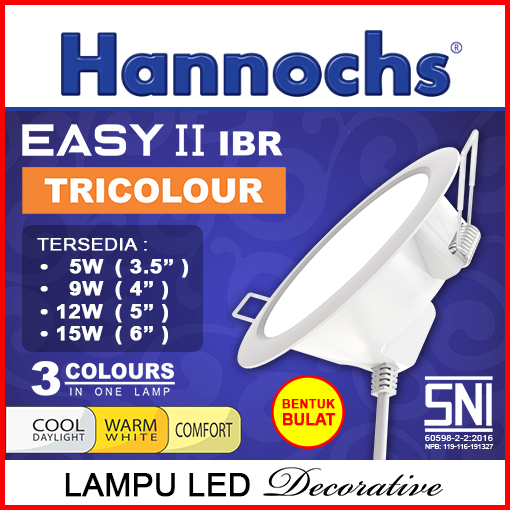 Lampu Downlight Hannochs Easy 3w - 20w 3warna Tricolor Bulat Panel Led Hannochs Downlight Led Hannochs Downlight 3w Down