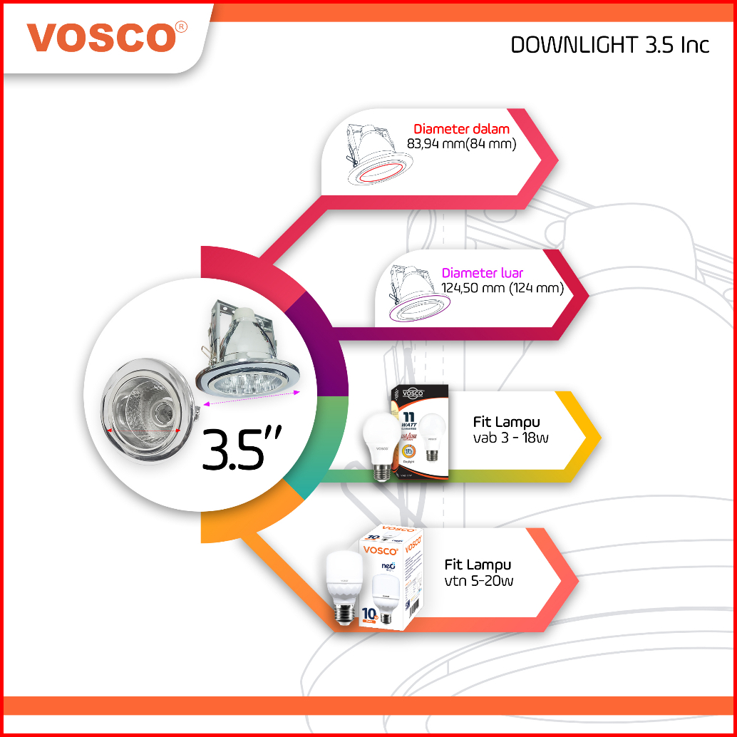 Downlight Lampu Termurah 3.5 Inch Material Chrome Premium Best Seller Tinggi Bisa Di Stel E27