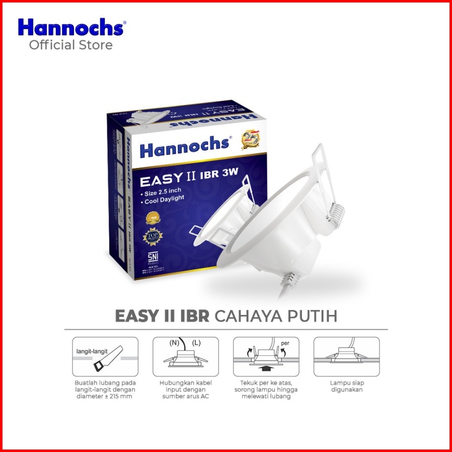 Lampu Downlight Led Plafon Hannochs Easy Ii 3w Bulat Ib