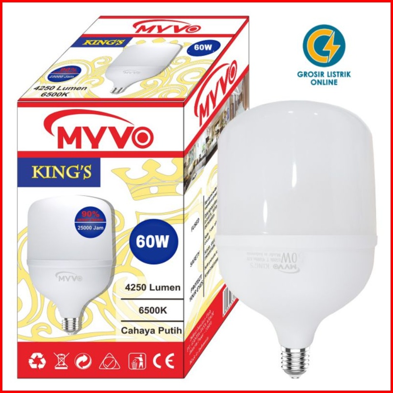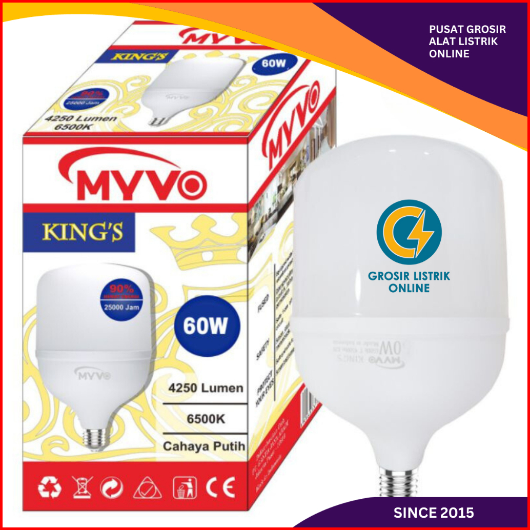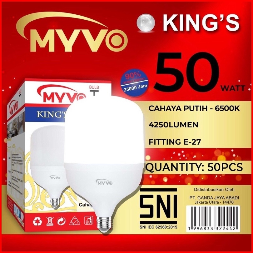 Lampu Led Myvo 60w 60 Wattt T Bulb King S Bohlam Putih 6500k Super Terang Garansi 1 Tahun