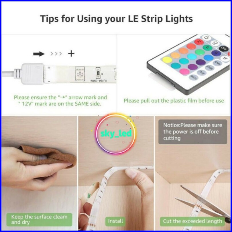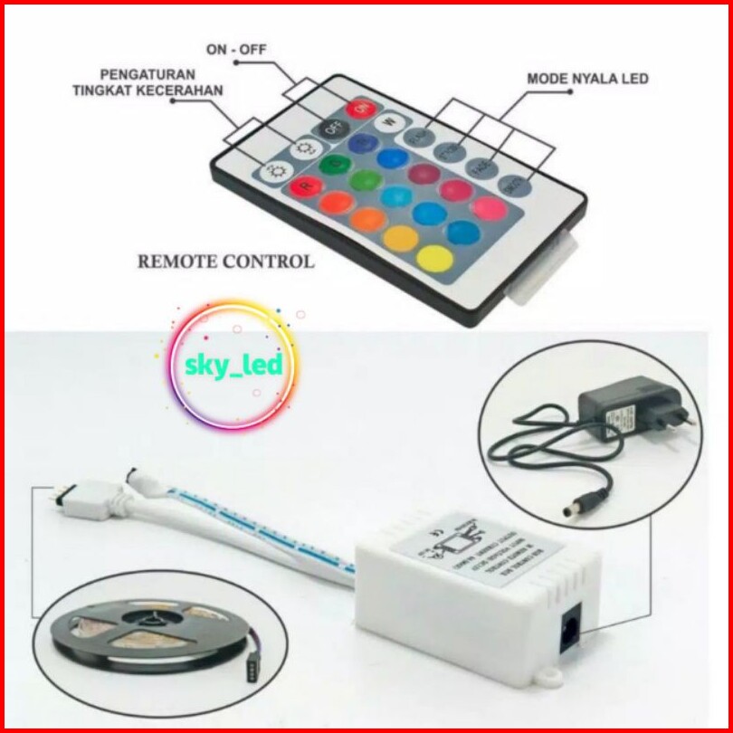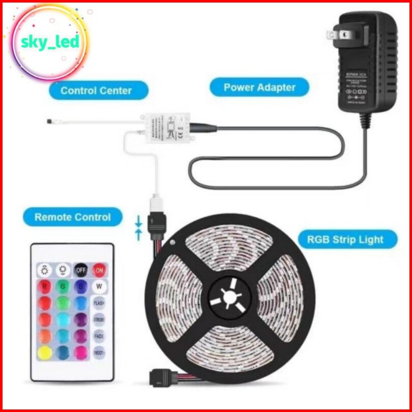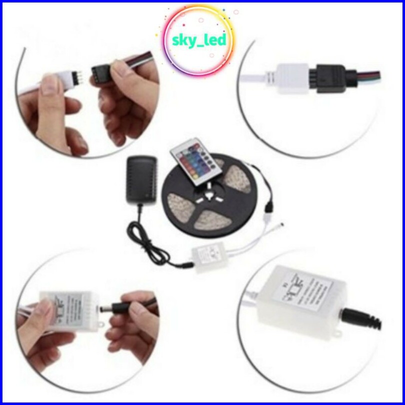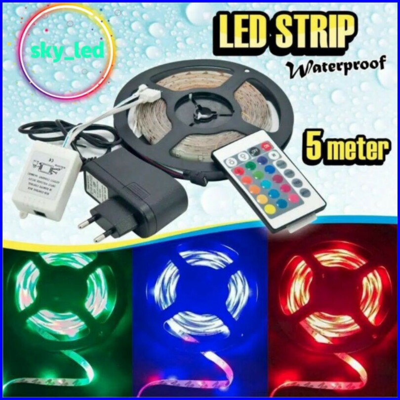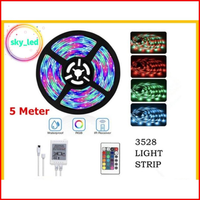 Pkaet Lampu Led Strip Rgb Warna Warni Ip44 2835 3528 Komplit Set Adaptor Remote