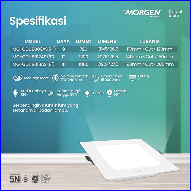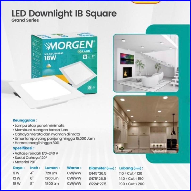Morgen Grand Series Downlight Led Panel Inbow Ib Kotak Murah Bergaransi Square 9w 12w 18w 9 12 18 W Watt Cahaya Putih Da