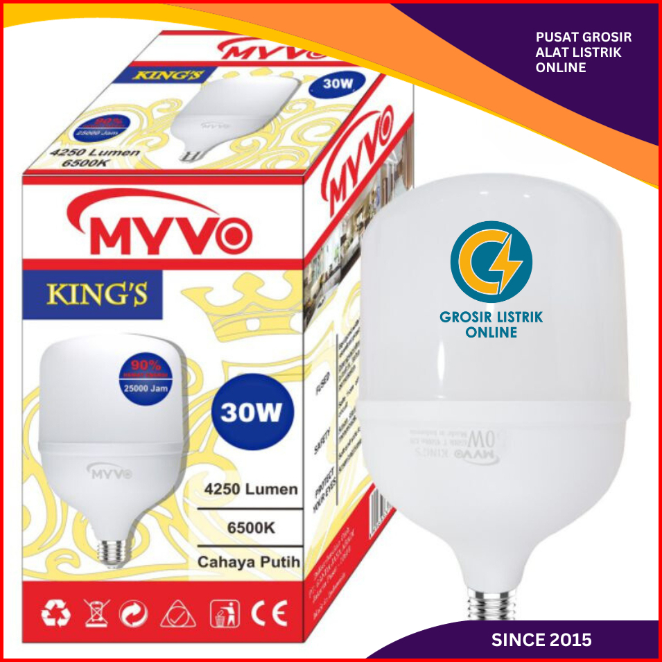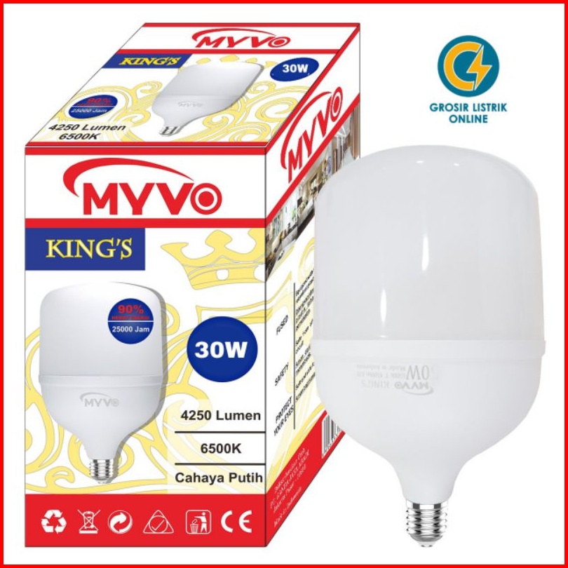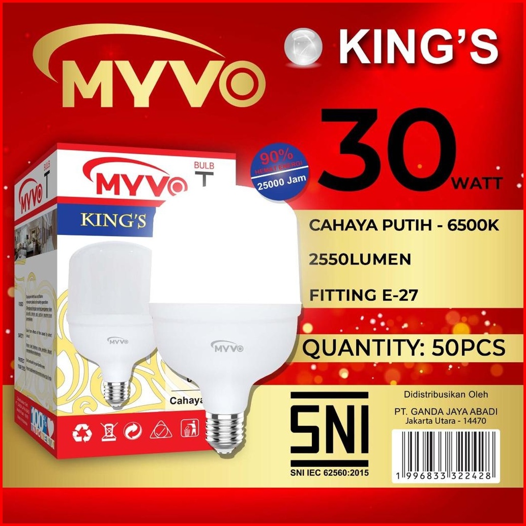 Lampu Led Myvo Kings 30w 30 Watt E27 6500k Putih Garansi 1 Tahun Sni