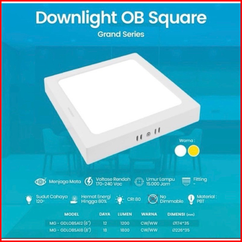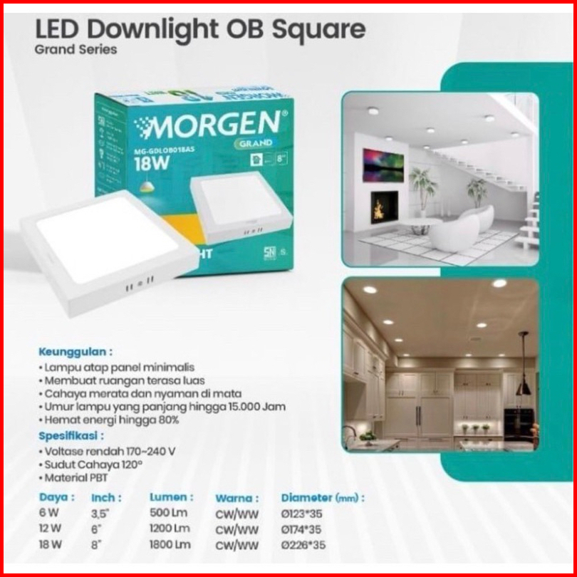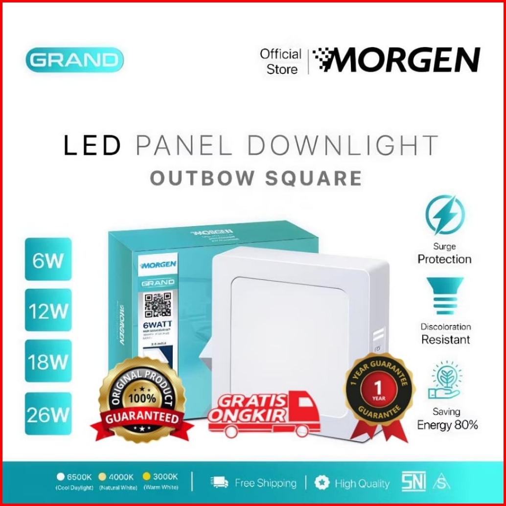 Morgen Grand Series Downlight Led Panel Outbow Ob Kotak Murah Bergaransi Square 6w 12w 18w 6 12 18 W Watt Cahaya Putih D