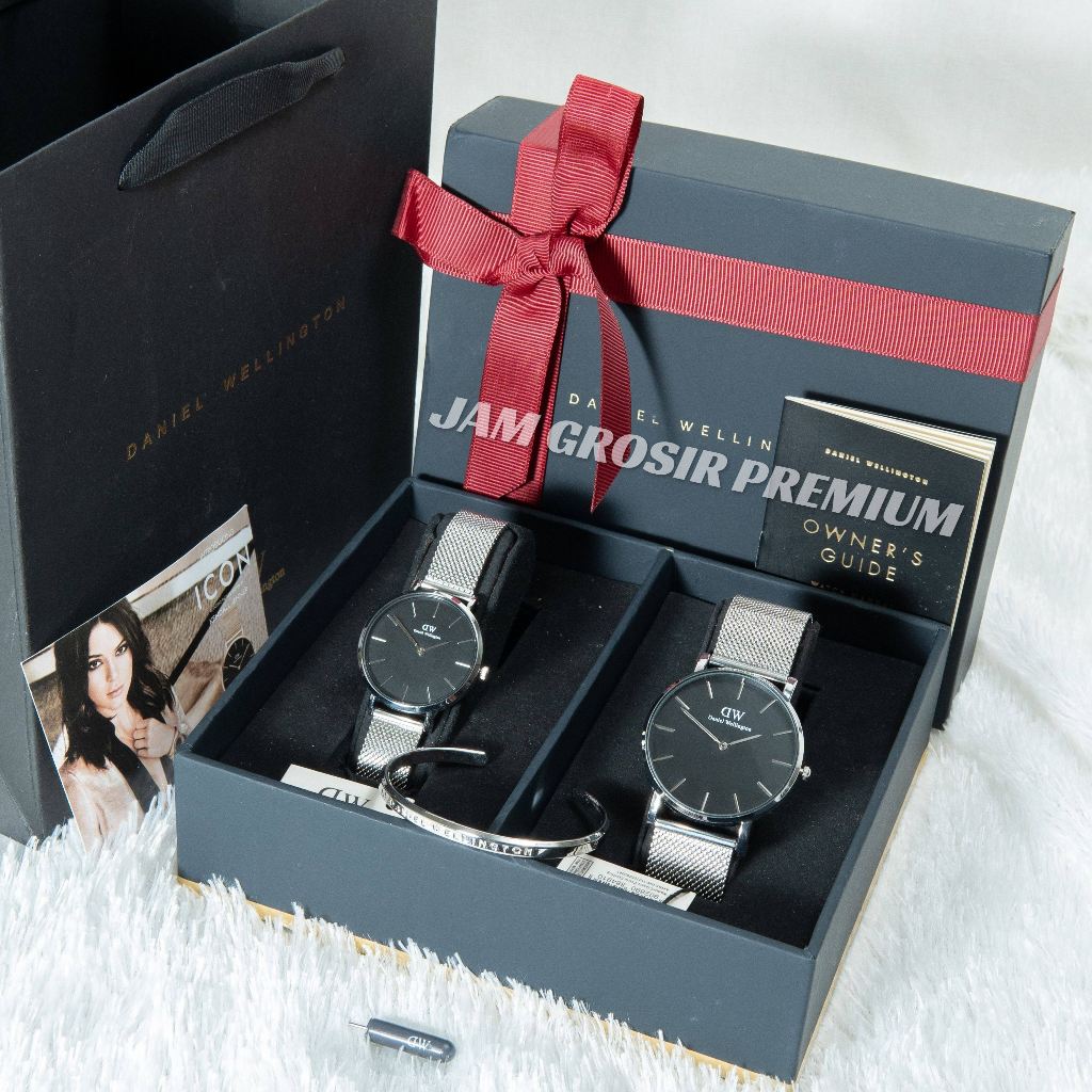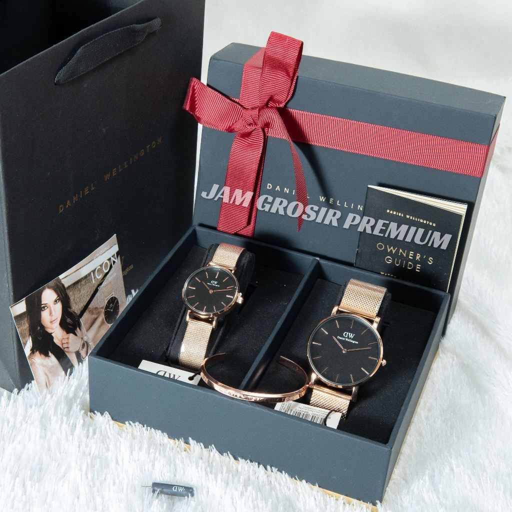 Paket Fullset Box Pita Original Jam Tangan Couple ( Pria / Wanita ) W1208D Rantai Pasir Garansi 2 Tahun