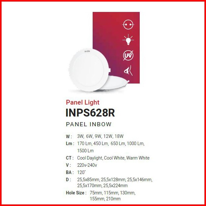 In Lite Led Panel 18w 18 Watt Bulat Inbow Ditanam - Inps628r Inps 628r Lampu Inlite Led Downlight Led Plafon Panel Round