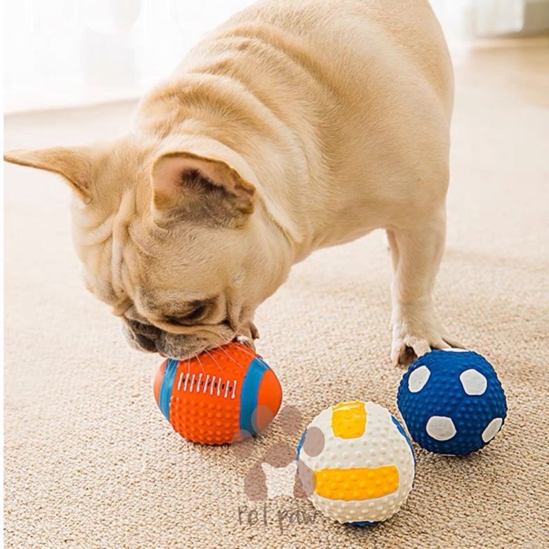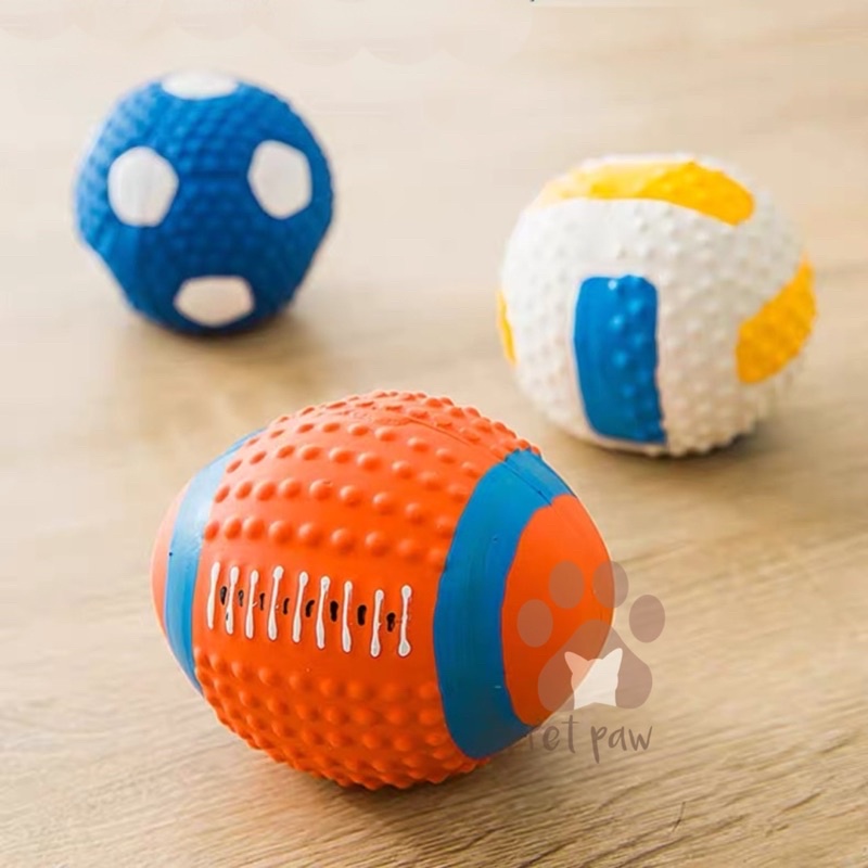 ( PROMO )Mainan Gigit Bola Anjing Kucing Karet Bunyi Premium Import Edisi Bola Soccer Rugby Sports