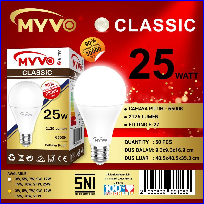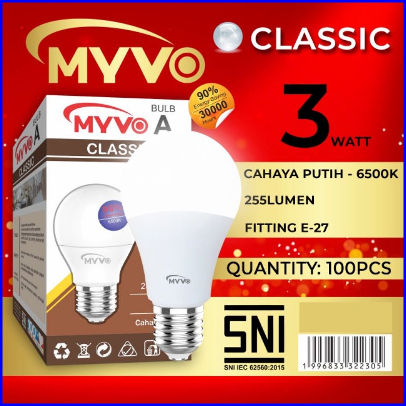 Lampu Led Myvo Classic 3 5 7 9 12 15 18 21 Watt 3w 5w 7w 9w 12w 18w 21w Classic A Bulb Garansi 1 Tahun Murah Grosir