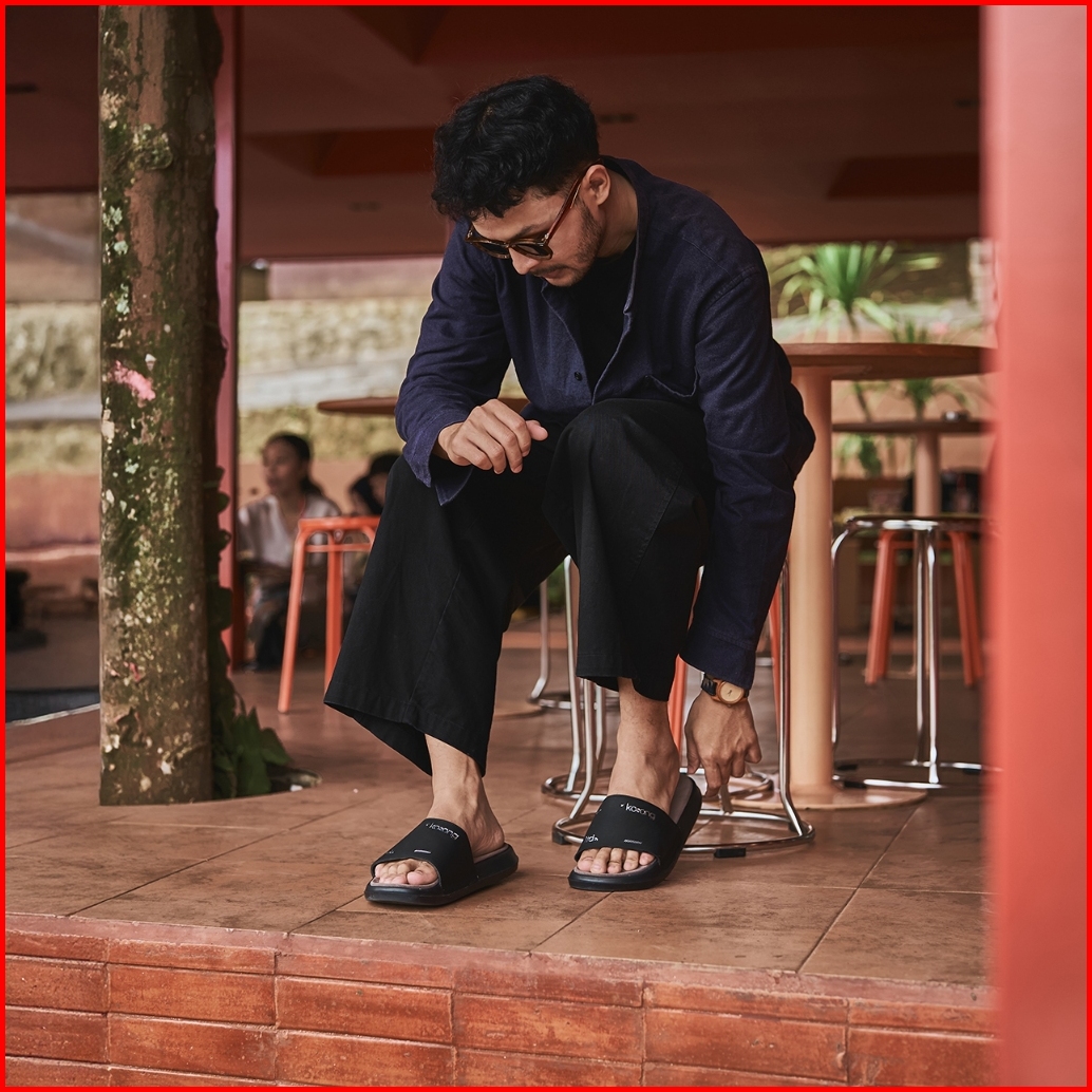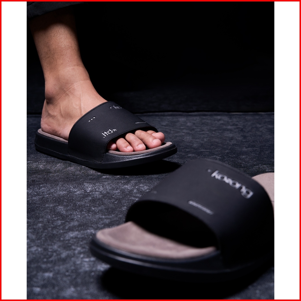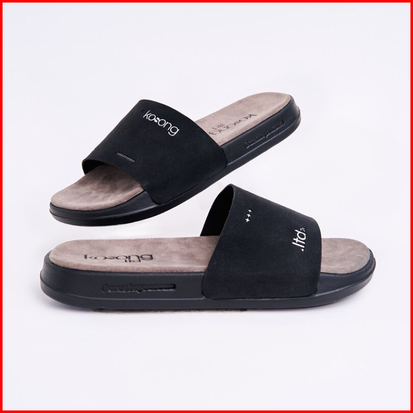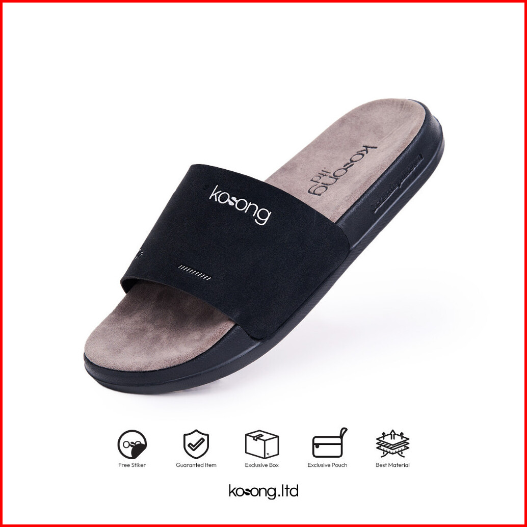 Kosong.ltd Sandal Slide Pria Wanita Luxe Suede - Black Grey Black Sendal