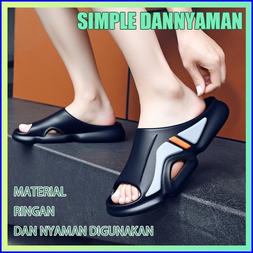 Yink Sandal Slop Pria Kekinian Keren Outdoor Olahraga Terbaru Sendal Karet Pria Dewasa Cowok Murah Casual Distro Empuk E