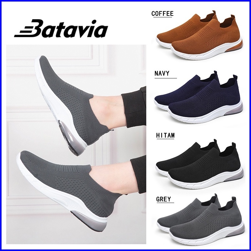 Batavia Grosir Sepatu Kanvas Pria Rajut Sepatu Pria Sepatu Tanpa Tali Hitam Sepatu Pria B09