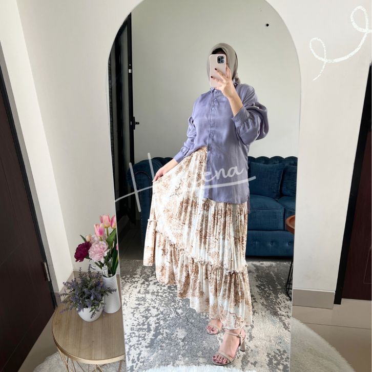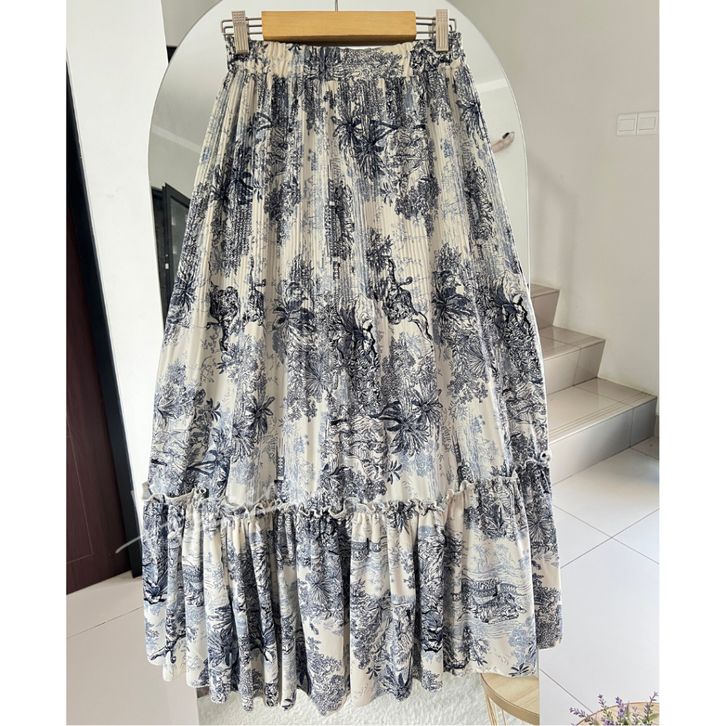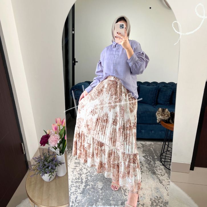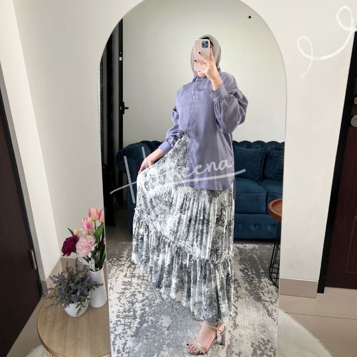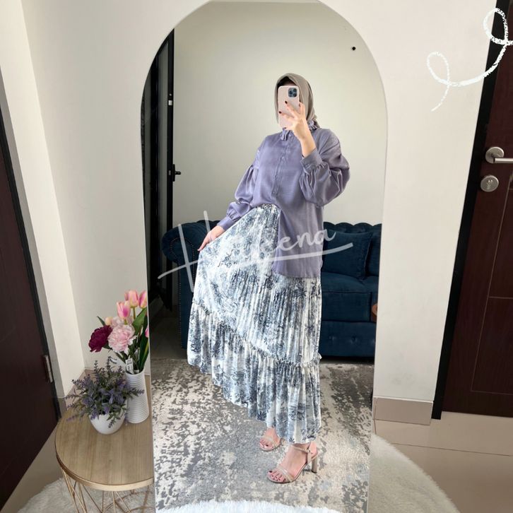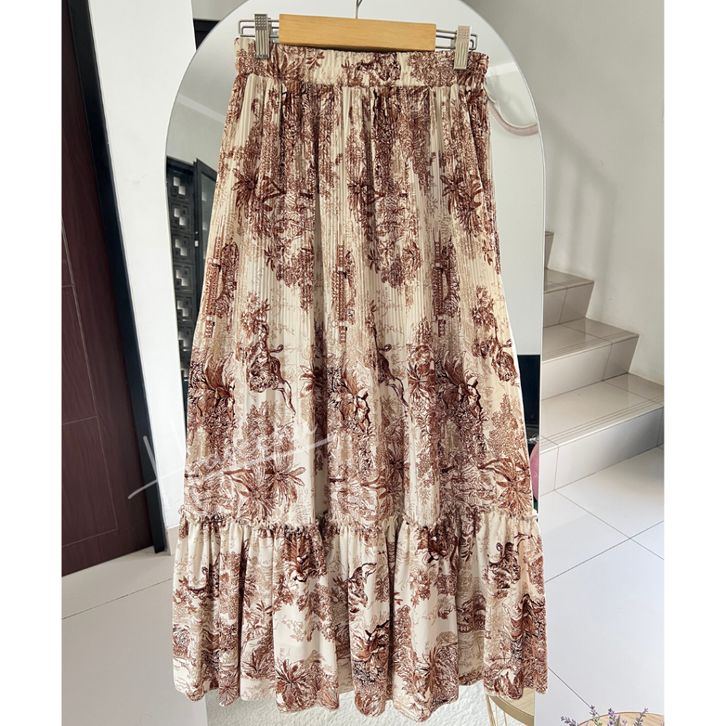 Haseena Rok Plisket Mietaa Rempel Susun Motif Klasik Prada | Rok Wanita Skirt Ruffle Anti Nerawang Motif Style Korea