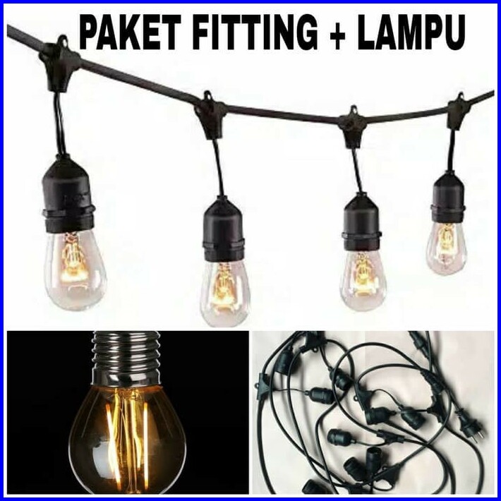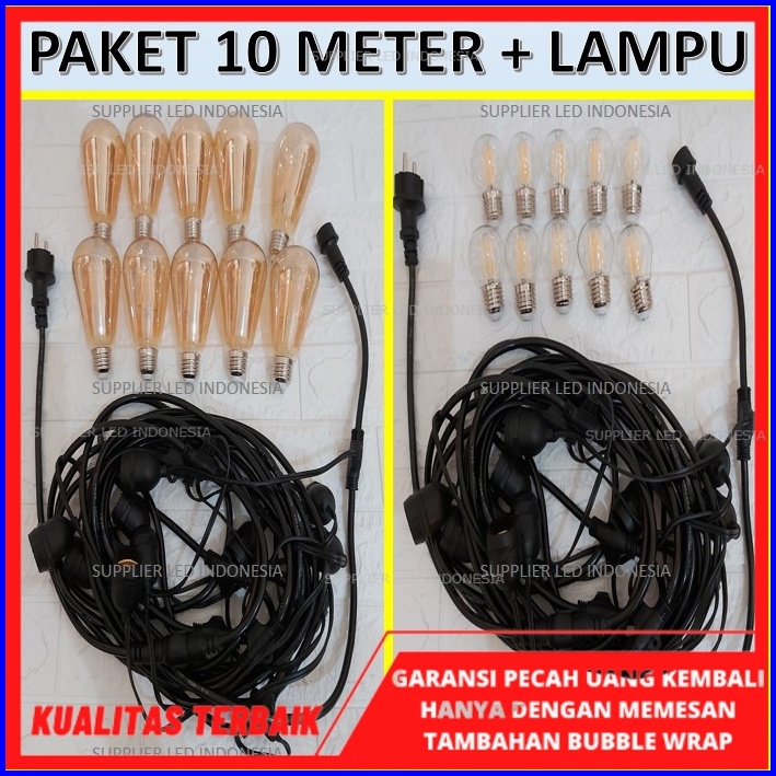 Paket Komplit Fitting Lampu Gantung 10 M 10 Fiting Kabel 10 Lampu Filamen Set 10 Meter Kabel 10m Langsung Siap Pakai