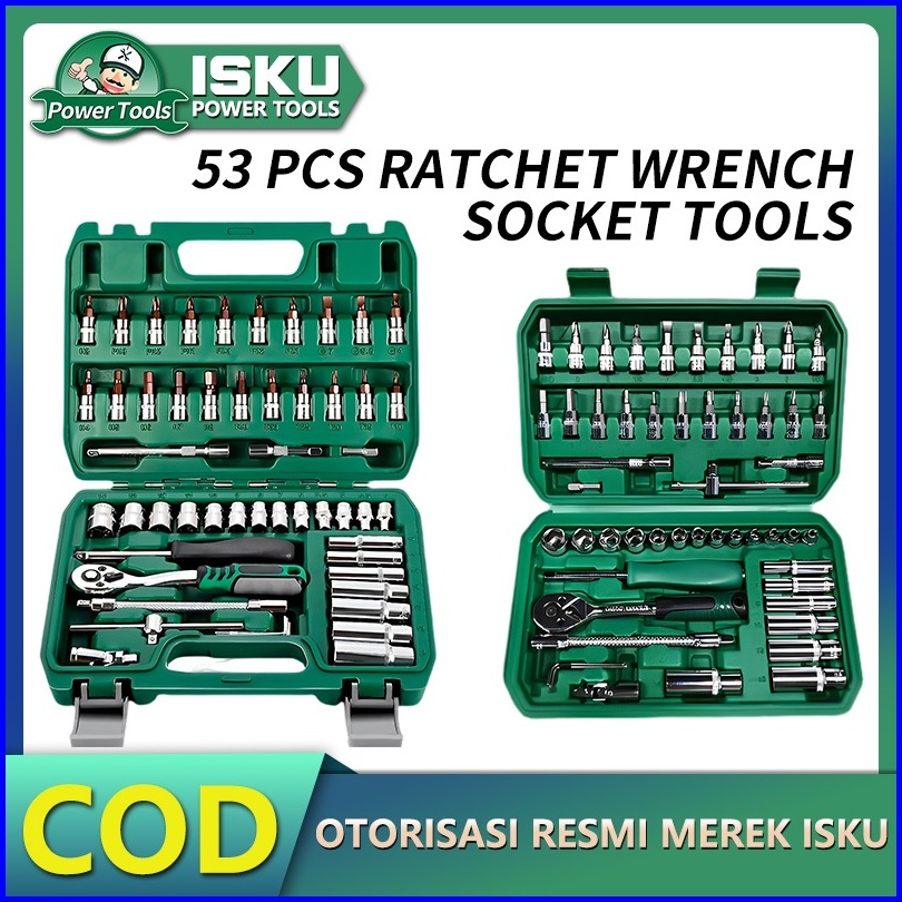 Isku Kunci Shock Set 53pcs 24gigi Full Lengkap Socket Toolkit 53 Pcs Mata Sok Toolkit Set Lengkap