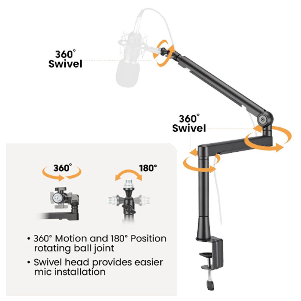 MIC LIGHTING KAMERA DLL SOUNDTECH LP1 BOOM ARM STAND 360 ROTATE HEAVYDUTY STAND