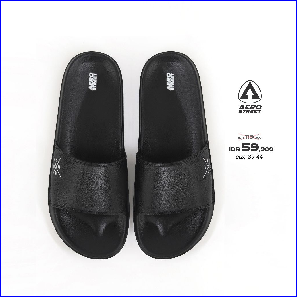 Aerostreet 39-44 Xenon Hitam Hitam - Sandal Sendal Selop Slip On Casual Pria Wanita Aero Street 22aaa0