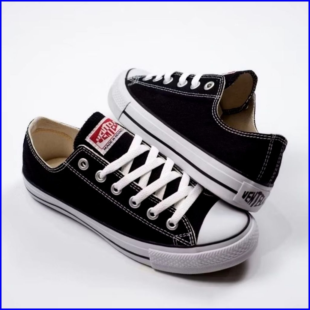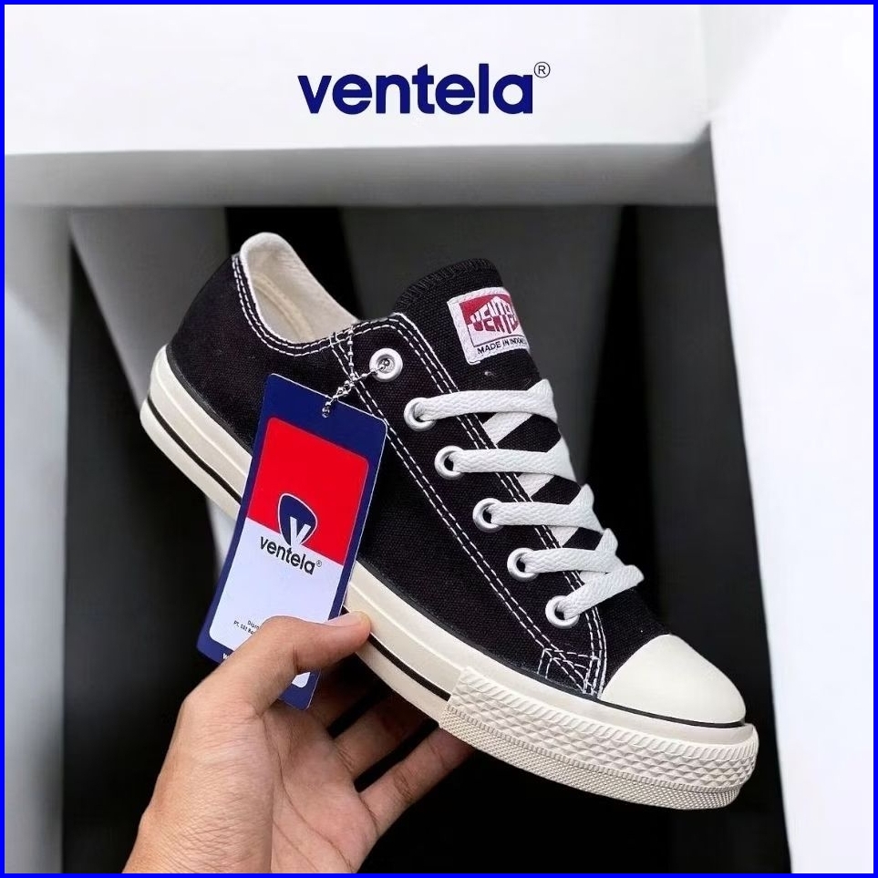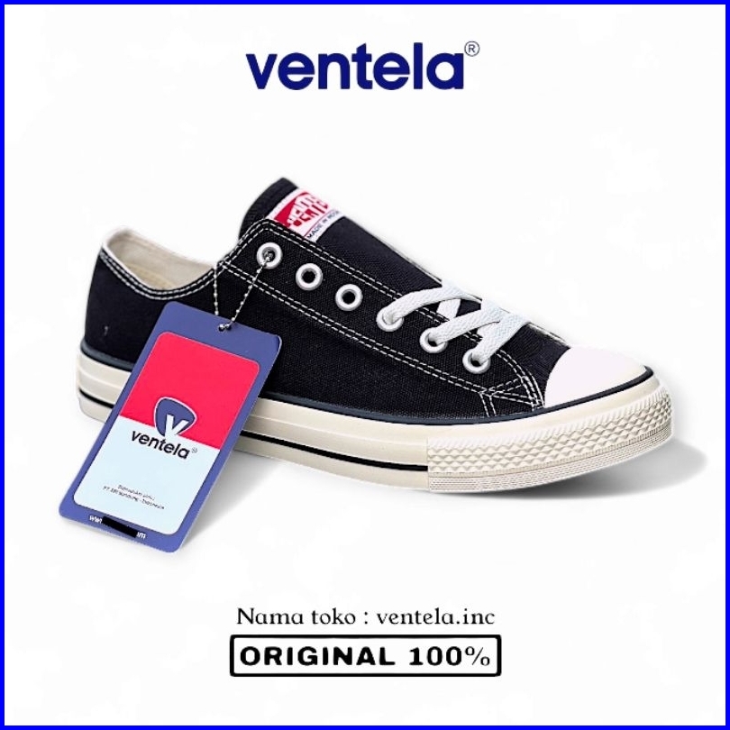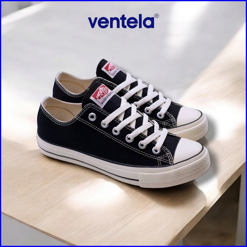 Ventela Ethnic Low Sneakers Hitam Putih Sepatu Casual Pria Wanita Original